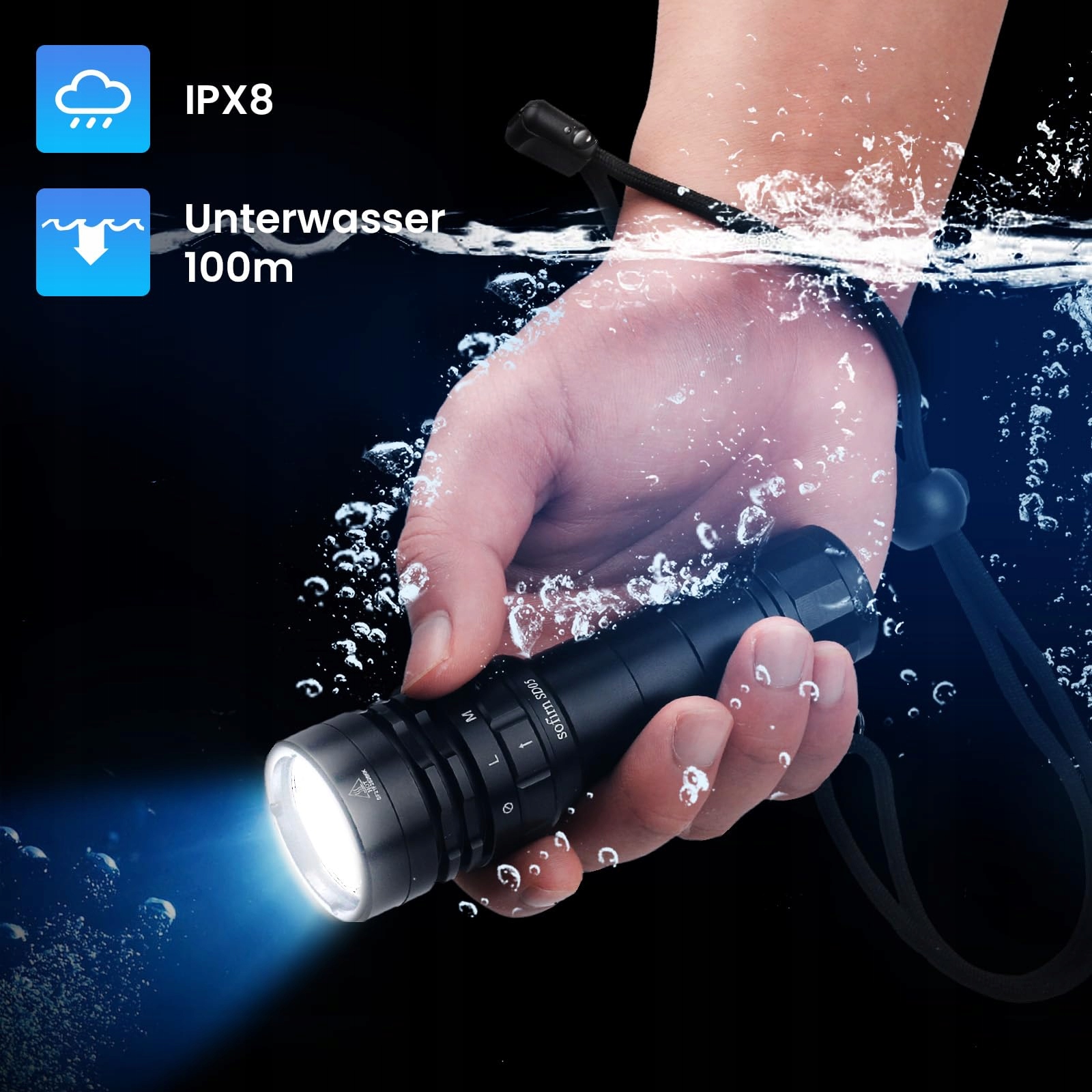 Superjasna: Latarka nurkowa Sofirn SD05 jest wyposażona w diodę XHP50B. Osiąga maksymalną jasność do 3000 lumenów i zasięg do 270 metrów.