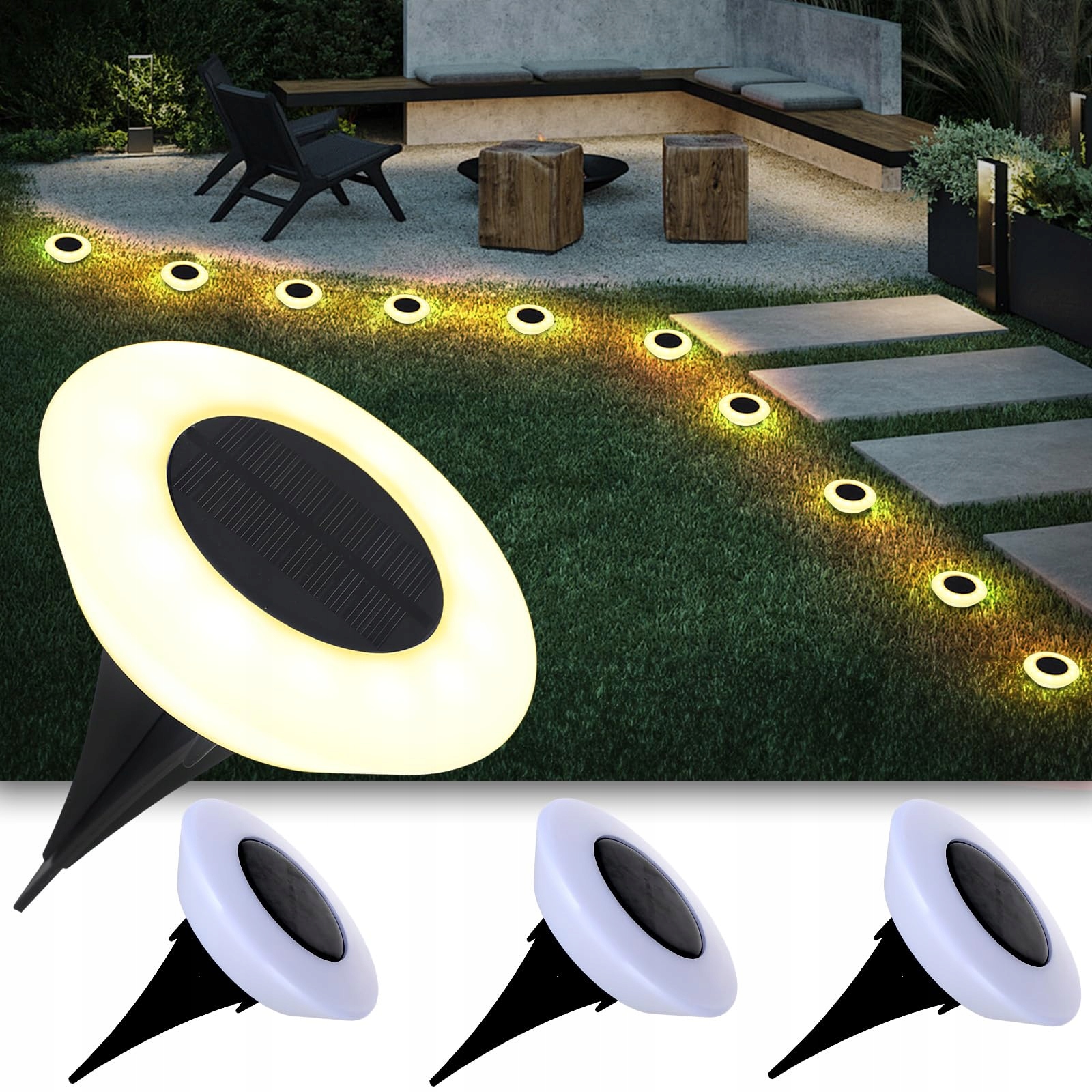 Szerokie zastosowanie: Te zewnętrzne lampy solarne do ogrodu nadają się do wielu miejsc, takich jak ogrody, ścieżki, tarasy, trawniki, chodniki, schody, krajobrazy, wejścia i baseny, idealne do dekoracji oświetlenia zewnętrznego. Temperatura barwowa wynosi 3000K, co czyni je bardzo eleganckimi, dyskretnymi i przytulnymi lampami solarnymi do ogrodu.