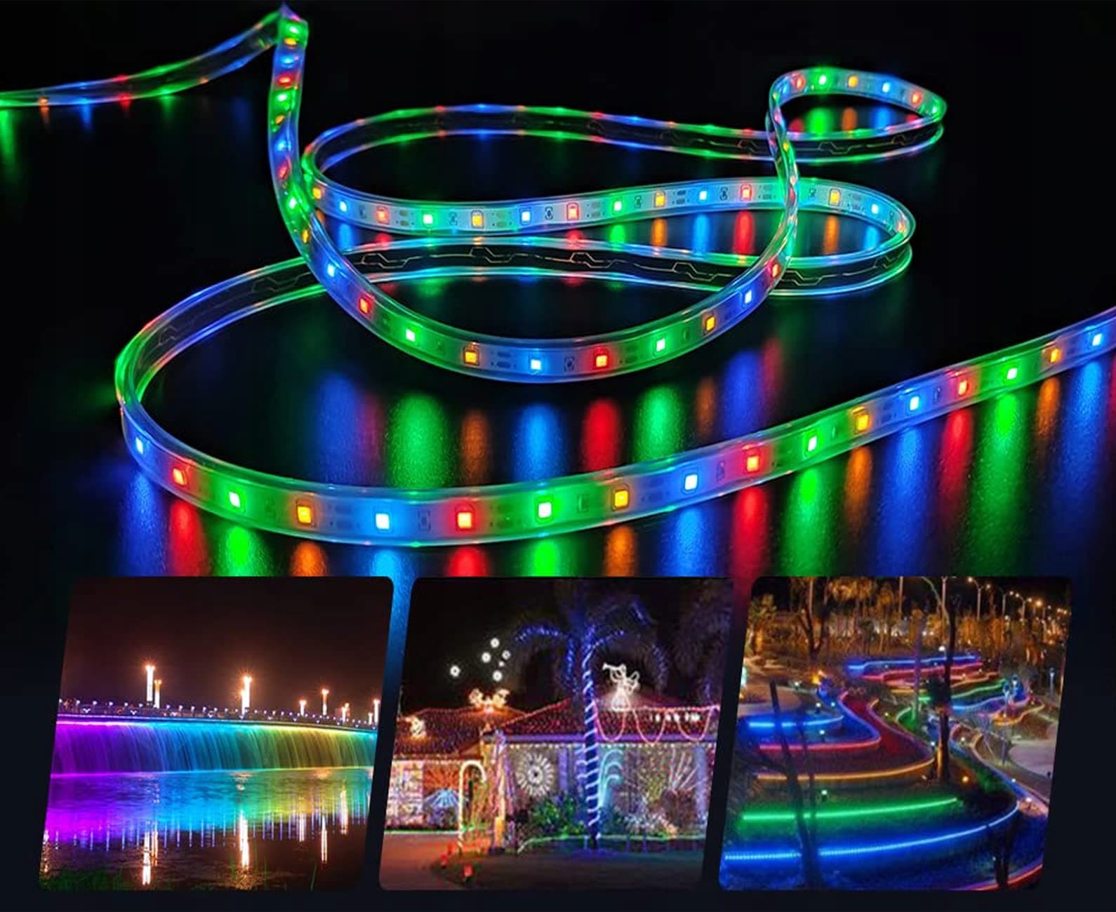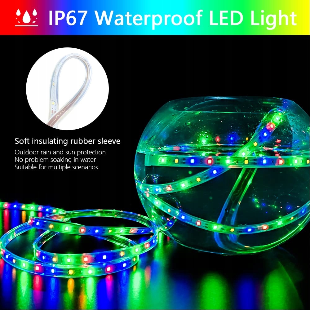 Ściemnialne oświetlenie: Dzięki regulowanej jasności pasek świetlny może być przyciemniony lub jasny. Cztery poziomy jasności: 25%/50%/75%/100%. Idealna dekoracja do basenu, ogrodu i podwórka. Wybierz najlepsze diody LED 2835 z żywotnością do 50 000 godzin.