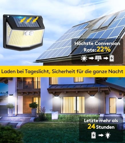 [Profesjonalne oświetlenie] Ten zestaw 4 lamp solarnych jest wyposażony w 248 diod LED każda i umożliwia szerokie oświetlenie dzięki kątowi świecenia 270°. Zapewnij sobie ciągłe bezpieczne i dobrze widoczne otoczenie.