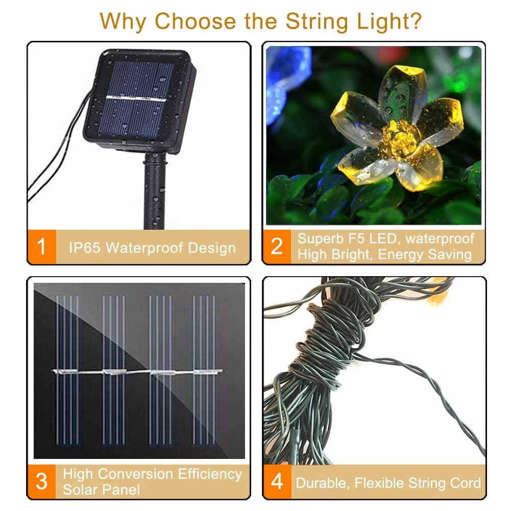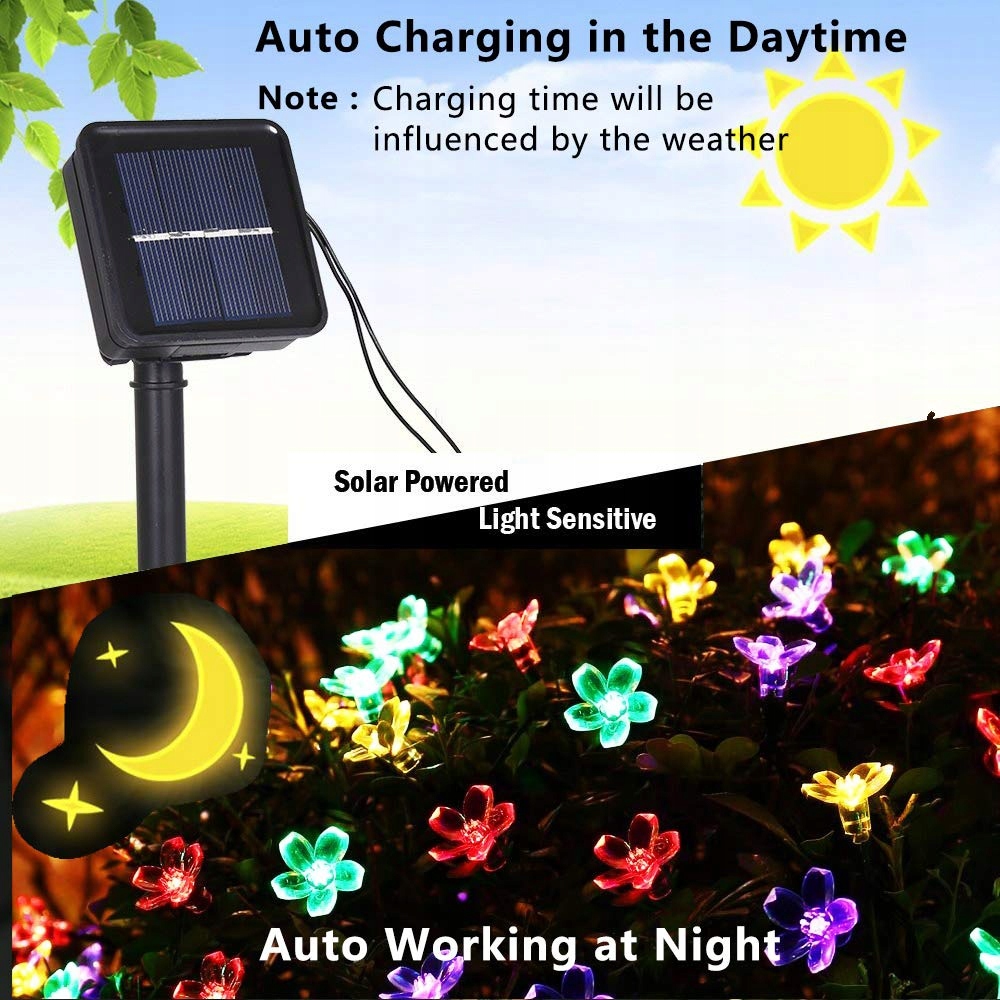 SOLARNE LAMPKI OGRODOWE 7M 50 LED KWIATY WODOODPORNE DEKORACJA ŚWIĘTA