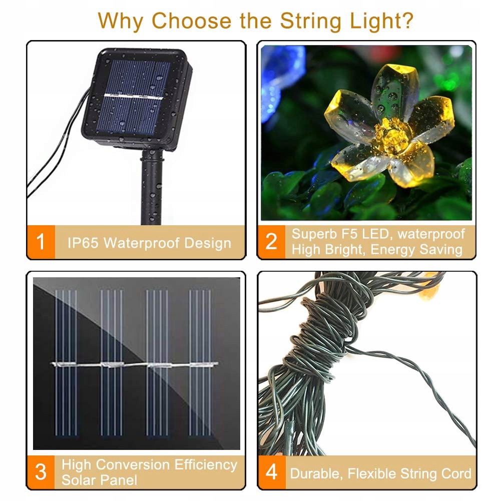 [IP65 wodoodporne] Wszystkie solarne lampki kwiatowe i ogniwa słoneczne są wodoodporne i odporne na ciepło. Zaprojektowane do użytku na zewnątrz, solarne lampki ogrodowe mogą działać nawet w deszczowy dzień. Trwałe i bezpieczne w użyciu, LED ma żywotność ponad 10000 godzin.