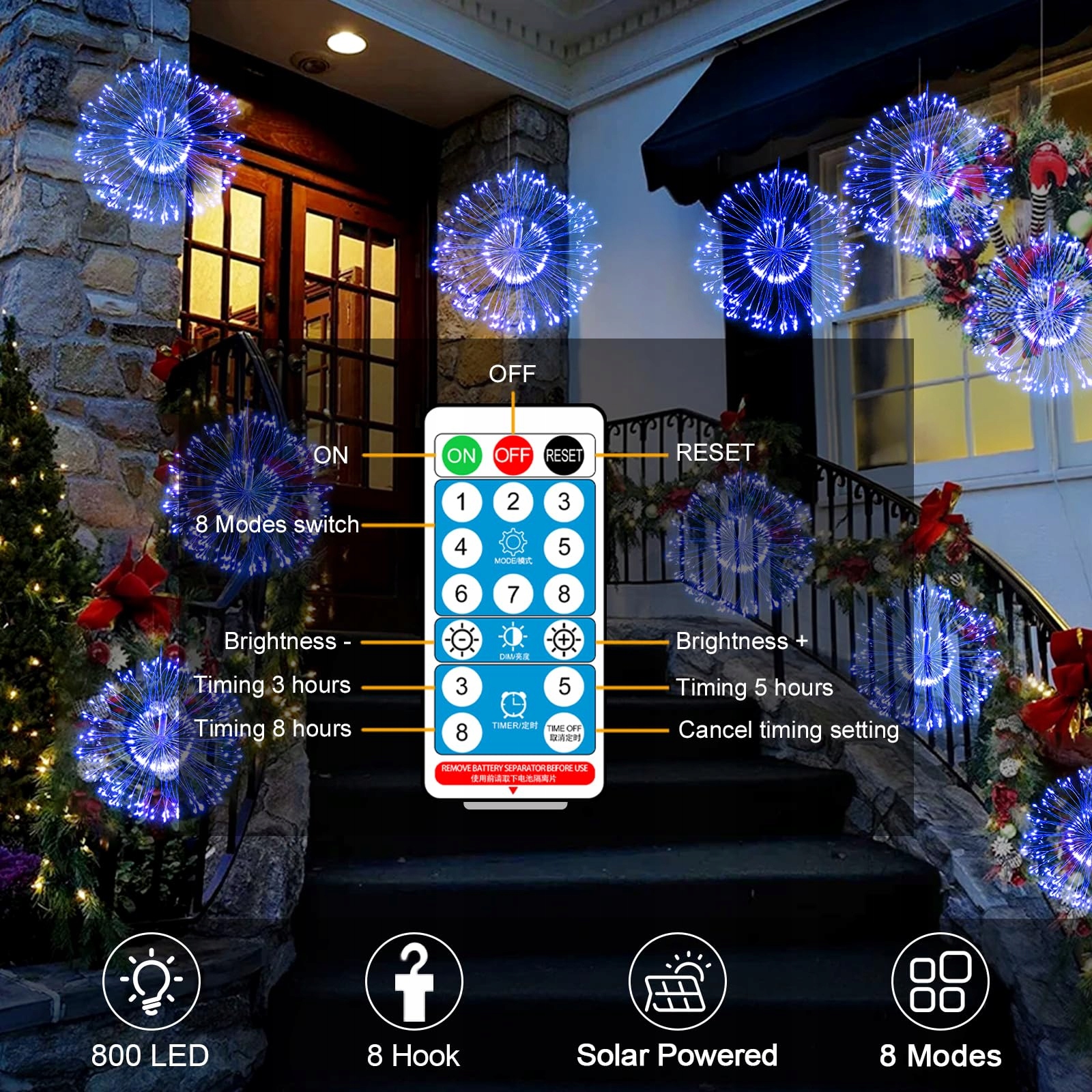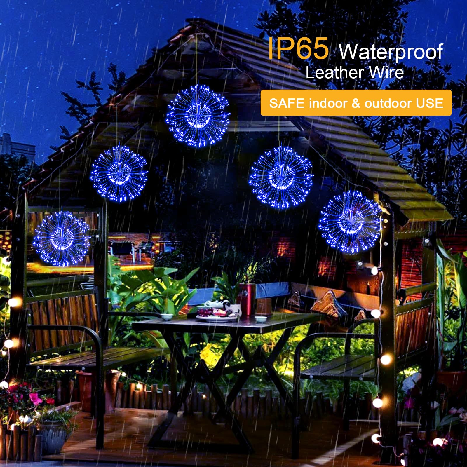 [Lampki Fajerwerkowe Wysokiej Jakości]Lampki fajerwerkowe mają 800 LED, 8 lamp fajerwerkowych jest połączonych, każda lampa fajerwerkowa ma 50 elastycznych wysokiej jakości drutów miedzianych (15,5 cm długości) z 100 koralikami LED. Każda lampa fajerwerkowa jest oddalona o 60 cm. Z dodatkowym 2-metrowym przewodem. Lampki fajerwerkowe przechodzą rygorystyczny test szczelności, są odporne na ciepło i wodoodporne, nie rdzewieją po kontakcie z wodą.