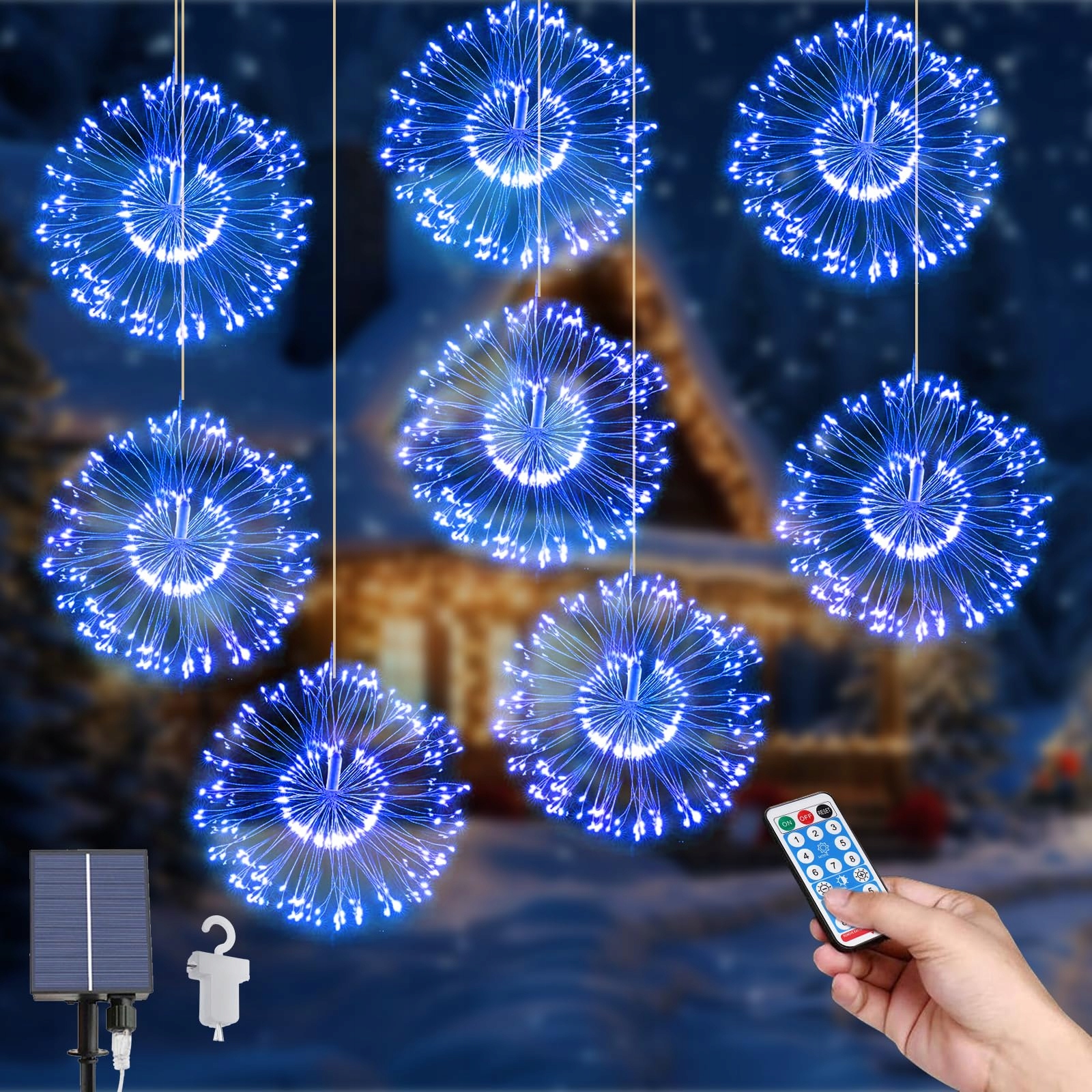 Solarne Lampki Ogrodowe, 8Pack Wiszące Solarne Lampki Fajerwerkowe 800 LED 8 Trybów Łańcuch Świetlny Na Zewnątrz Starburst Wodoodporne Lampki z Miedzi z Pilotem do Dekoracji Domu na Święta Bożego Narodzenia