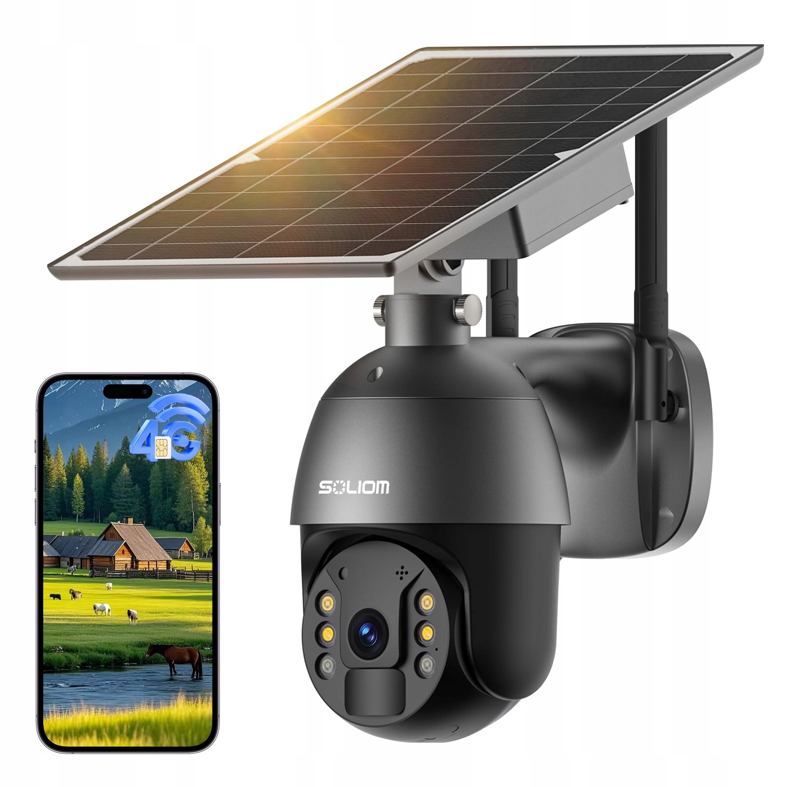 SOLIOM Kamera Zewnętrzna 4G LTE Solar 2K HD Bez WiFi 360° Nocna Wizja | Premium Supply