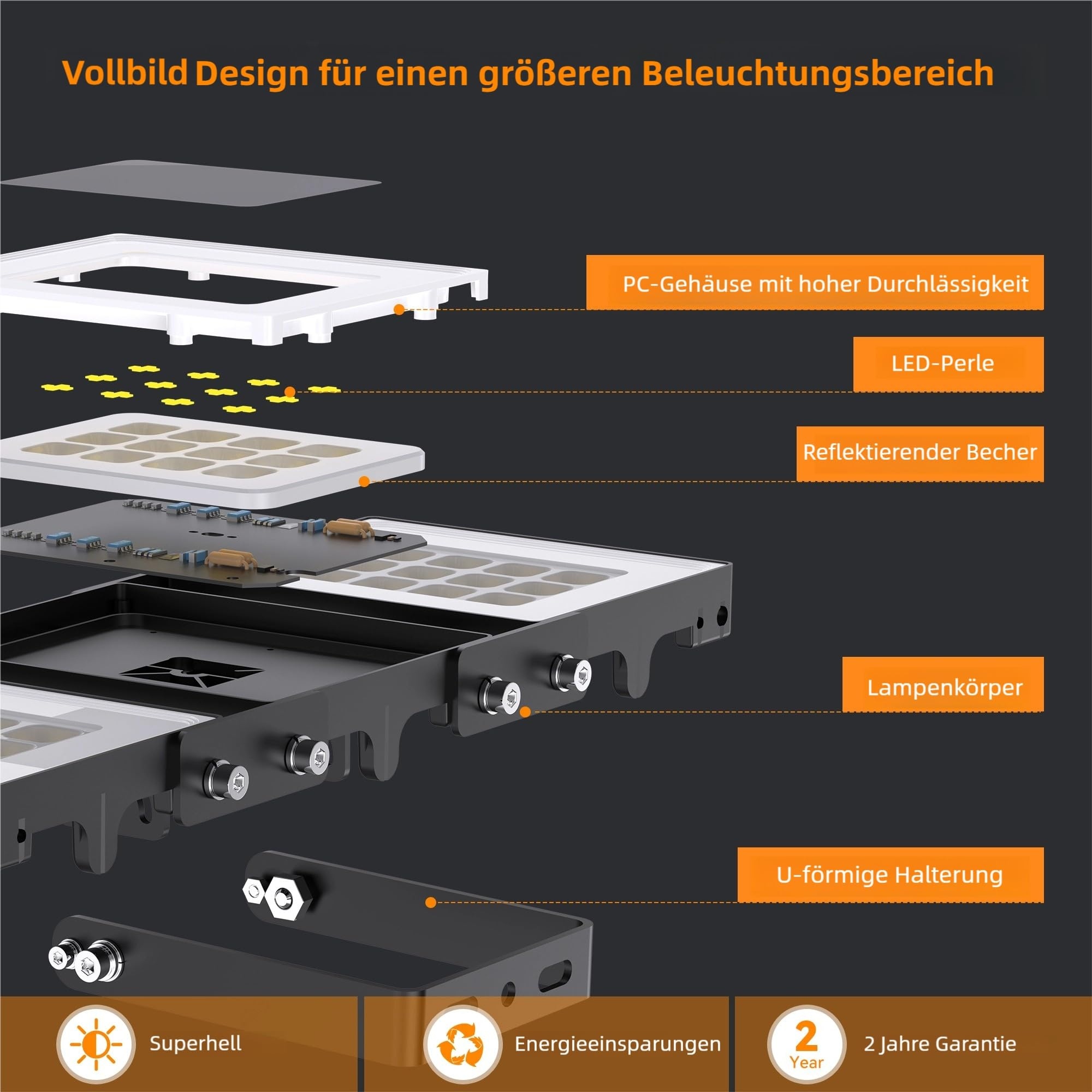 Wyjątkowa jasność i znaczne oszczędności: 15000 lumenów kąpie Twoją nieruchomość w intensywnym, światle przypominającym światło dzienne (co odpowiada 900W żarówce). 88% oszczędności energii. Drastycznie obniż rachunki za prąd, ciesząc się jednocześnie doskonałą wydajnością świetlną.