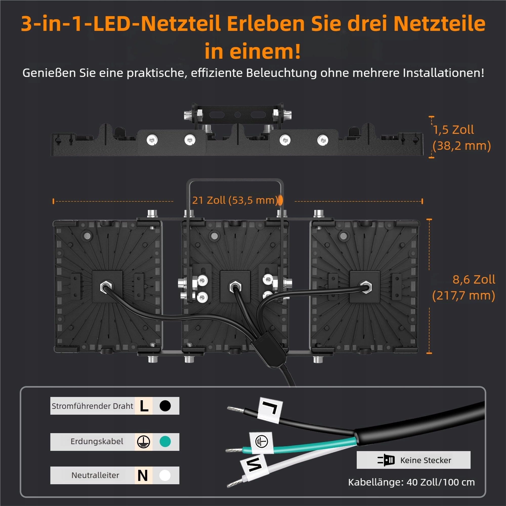 SOLLA-2025 Lite 150W LED zewnętrzne naświetlacz, 15000LM, 6000K światło dzienne IP66 wodoodporny, 3 regulowane głowice oświetlenia zewnętrznego bezpieczeństwa na parkingi, podwórka, ogrody-czarny