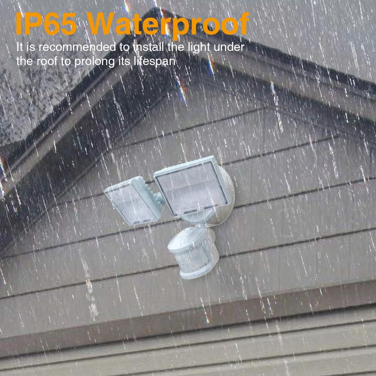 Użycie w każdych warunkach pogodowych: Zewnętrzne światło bezpieczeństwa SOLLA z czujnikiem ruchu posiada doskonałe odprowadzanie ciepła i żywotność żarówki do 50 000 godzin, co czyni je trwalszym niż inne marki. Podwyższona wodoodporność według normy IP65 wytrzymuje każdą pogodę, nawet silny deszcz, grad czy śnieg. Idealne na werandy, podwórka, drzwi wejściowe, garaże, tarasy, chodniki, schody i inne.