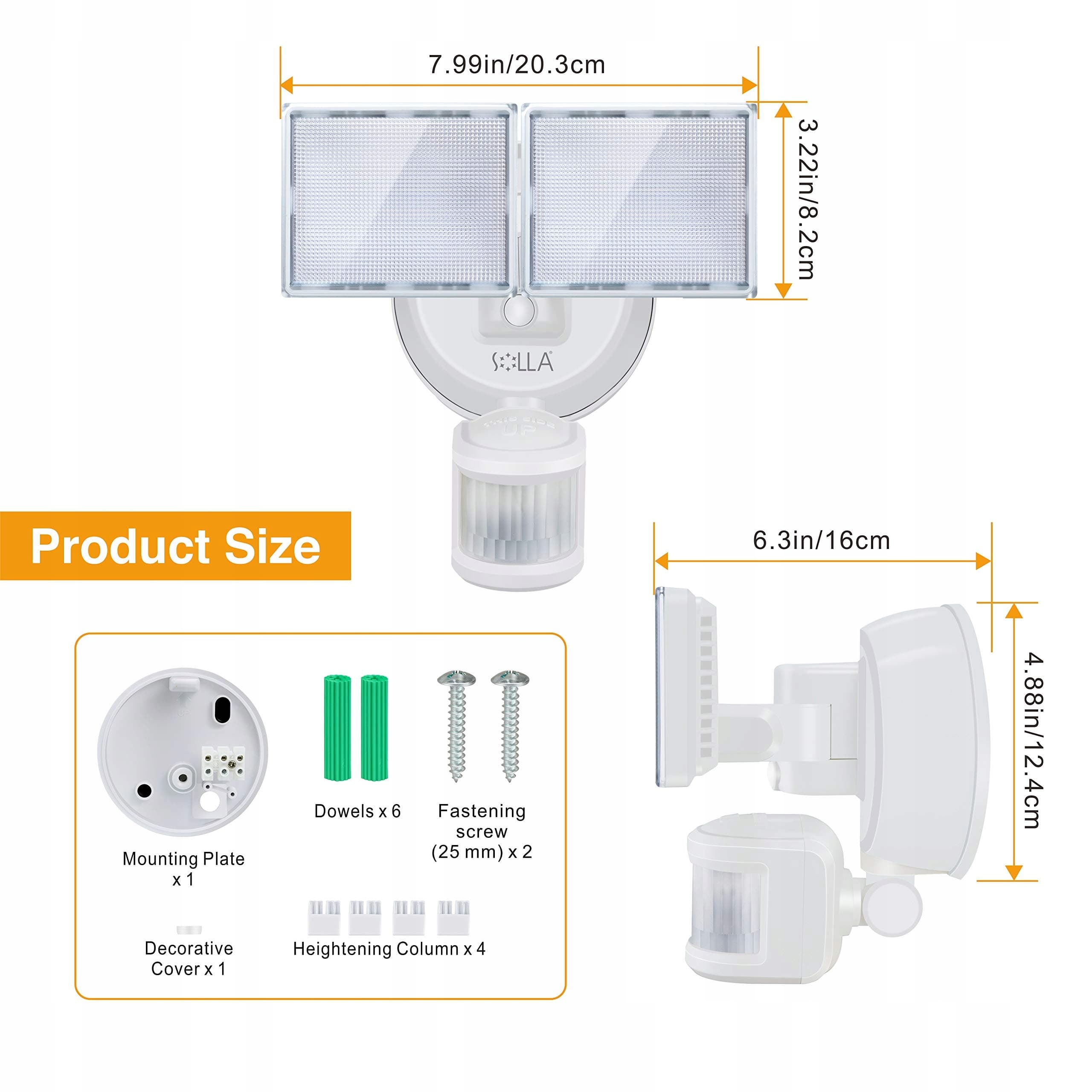 SOLLA reflektor LED z czujnikiem ruchu, 34 W 3000LM Superjasne LED światło bezpieczeństwa na zewnątrz, wodoodporny IP65 PIR reflektor zewnętrzny, 5000K 2 głowice LED reflektor do garażu, ogrodu, werandy, podjazdu