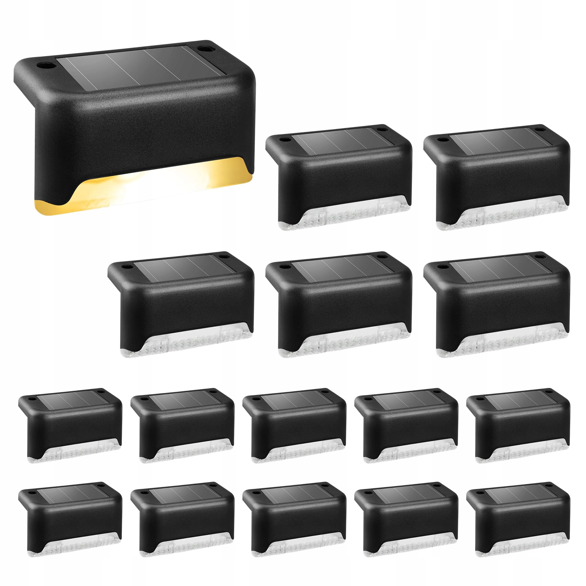 Lampy solarne do użytku na zewnątrz, 16 sztuk, wodoodporne lampy LED do schodów zewnętrznych, stopni, ogrodzenia, podwórka, tarasu, rynny, ścieżki, dekoracji (czarne, ciepłe białe)