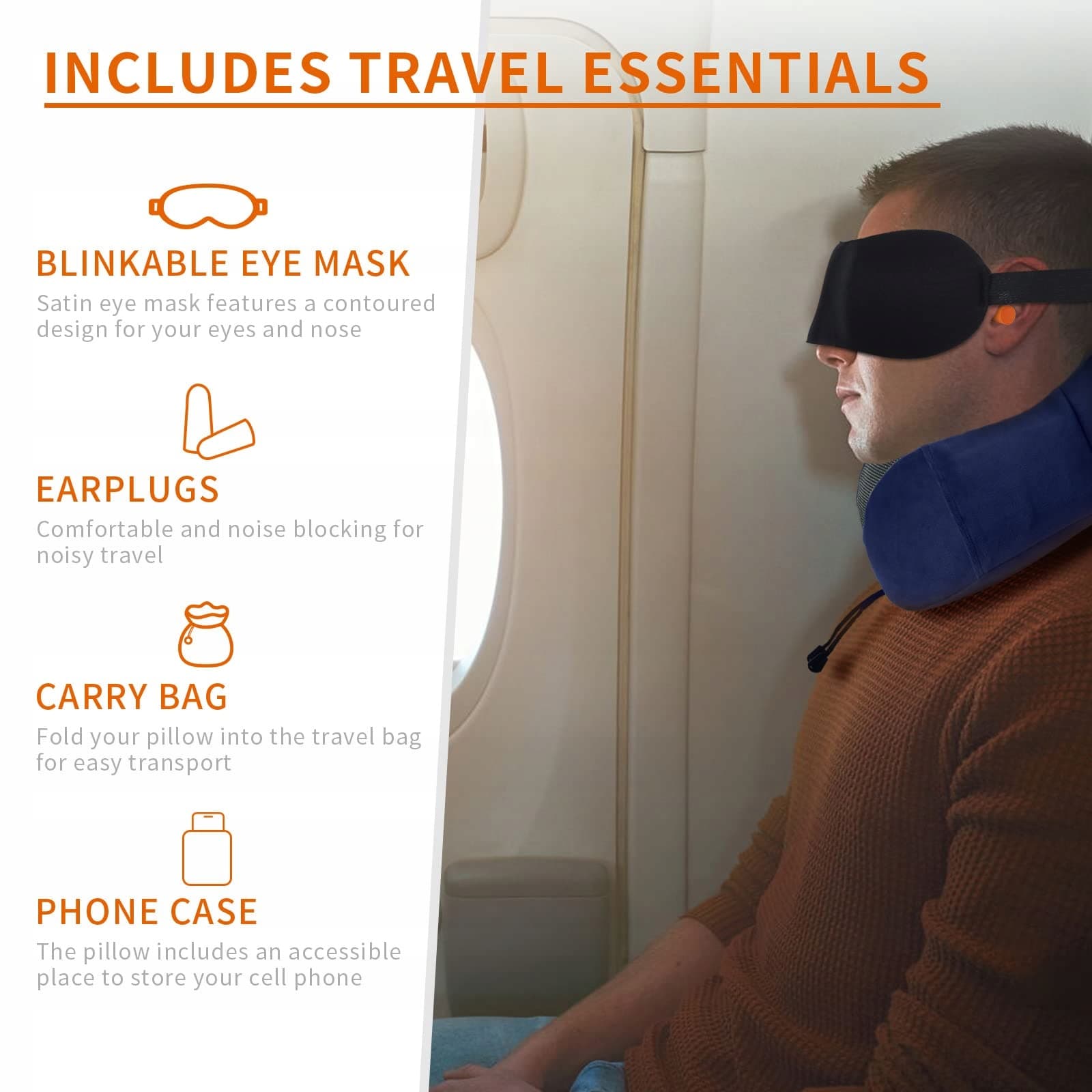 SOMLAW Poduszka podróżna z pamięcią, z 3D-maską na oczy i zatyczkami do uszu, poduszka podróżna z miękkiej bawełny w kształcie U, poduszka wspierająca szyję do samolotu, samochodu, pociągu, biura i kempingu