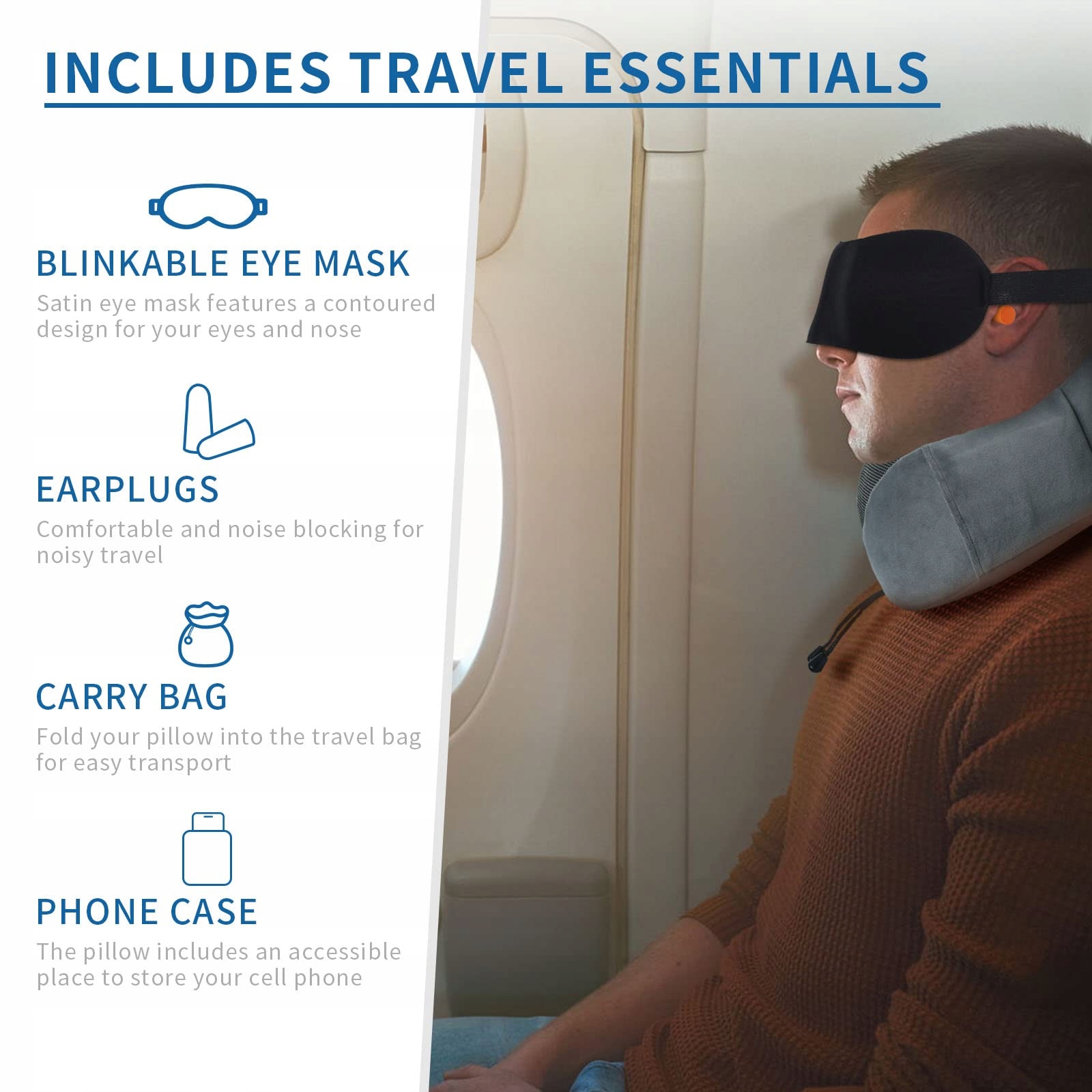 SOMLAW Poduszka podróżna z pamięcią, z 3D-maską na oczy i zatyczkami do uszu, poduszka podróżna z miękkiej bawełny w kształcie litery U, poduszka wspierająca szyję do samolotu, samochodu, pociągu, biura i kempingu