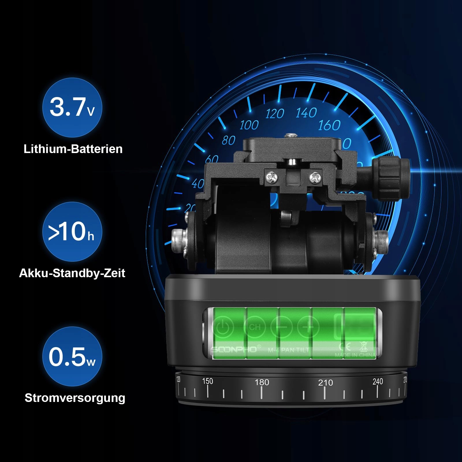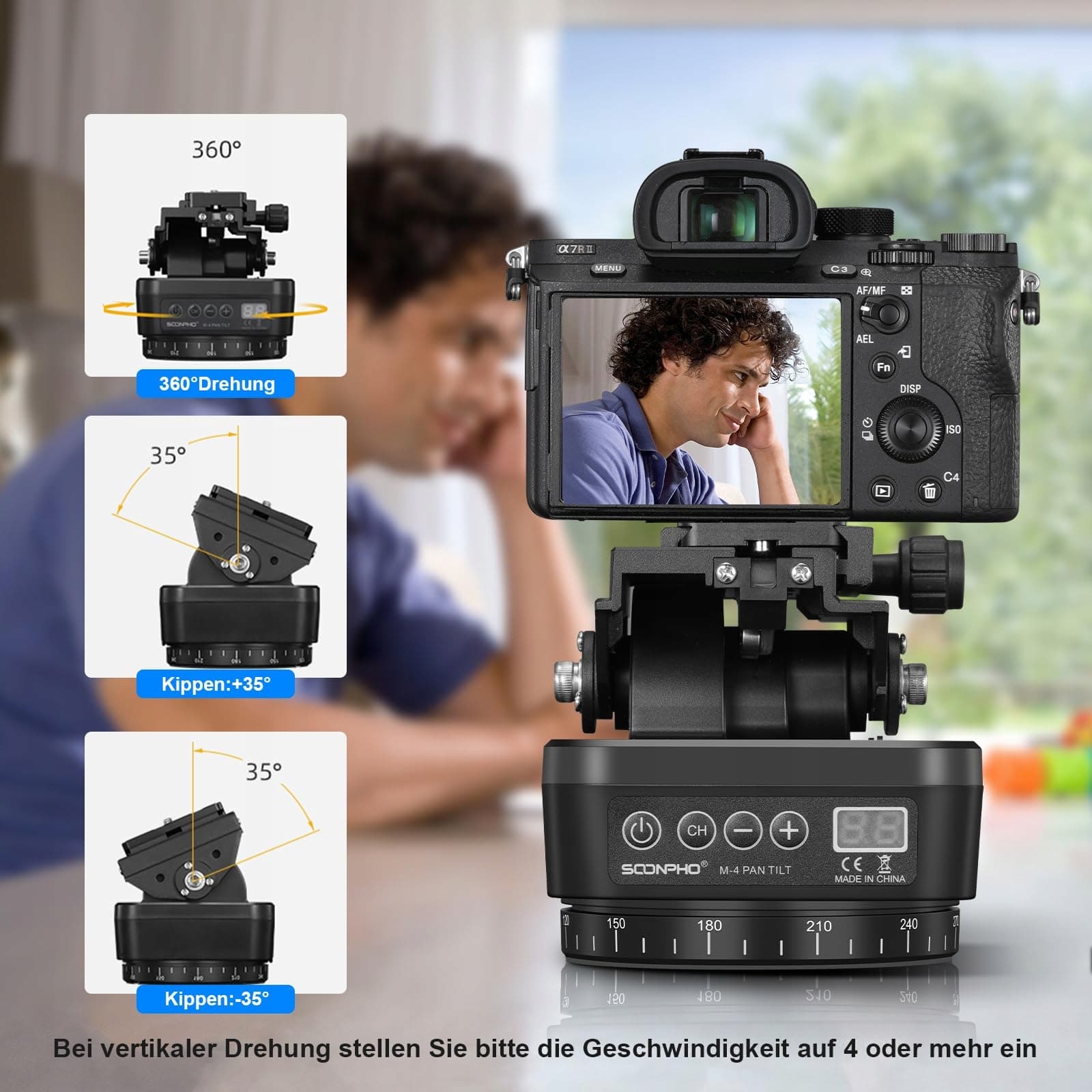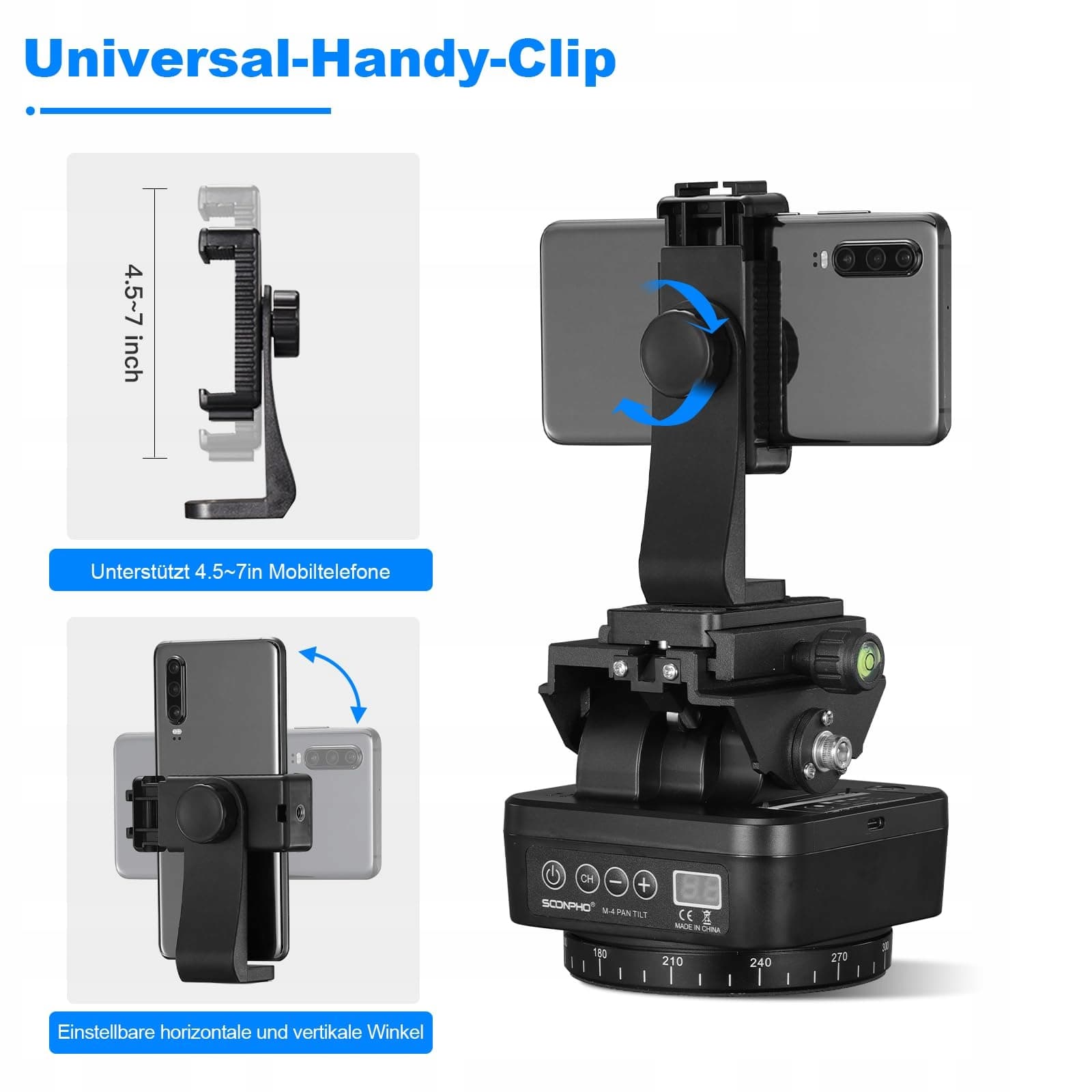 Soonpho M4 Panorama Głowica Statywu Głowica Zmotoryzowana Kamera Pilot Pan Tilt Zmotoryzowana Głowica 360 Stopni Elektryczna z Uchwyt Telefoniczny i Pilotem do Aparatów DSLR, Smartfonów