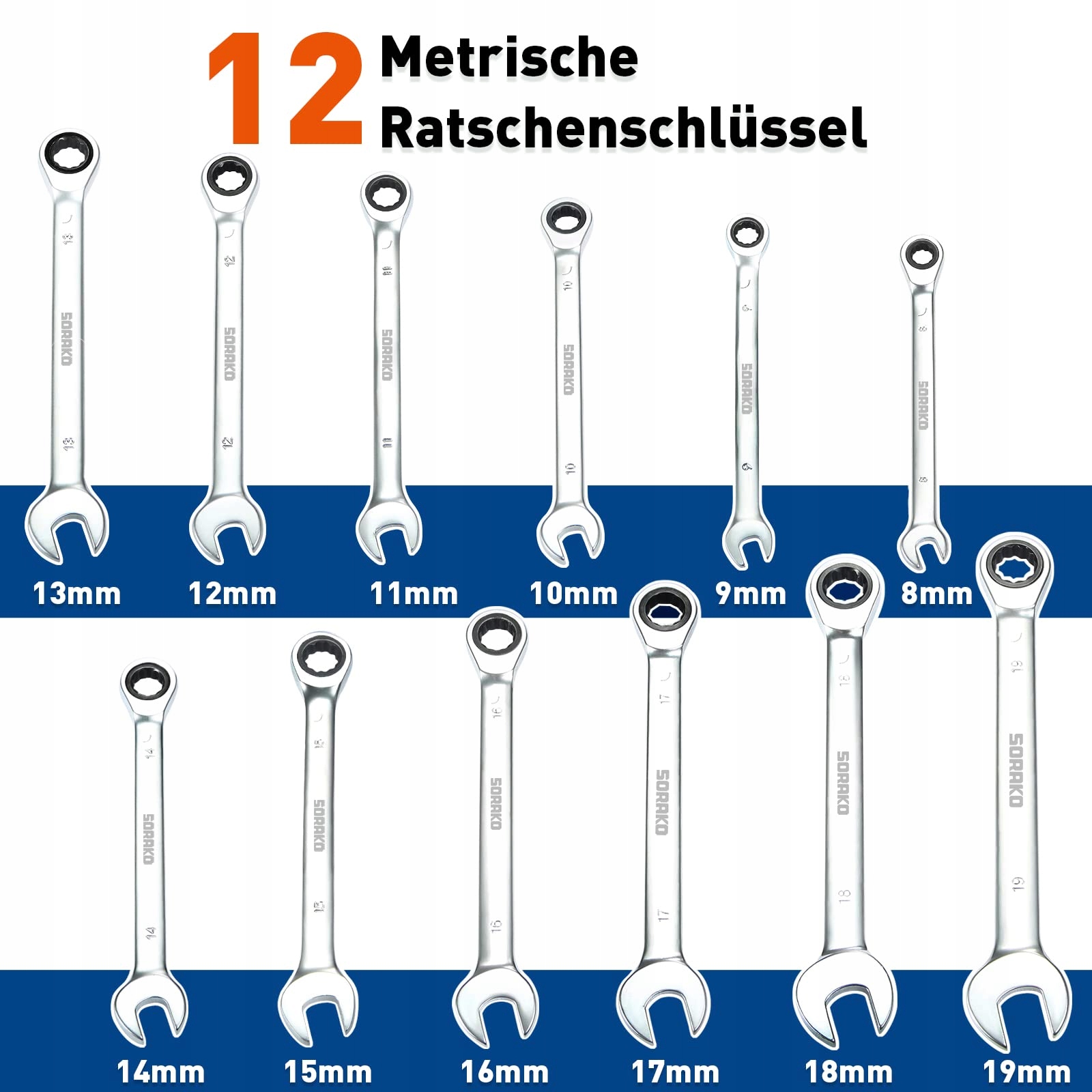 Zestaw kluczy nasadowych SORAKO, zestaw kluczy płaskich 8-19 mm, 12 sztuk kluczy płaskich i nasadowych do naprawy rowerów i samochodów
