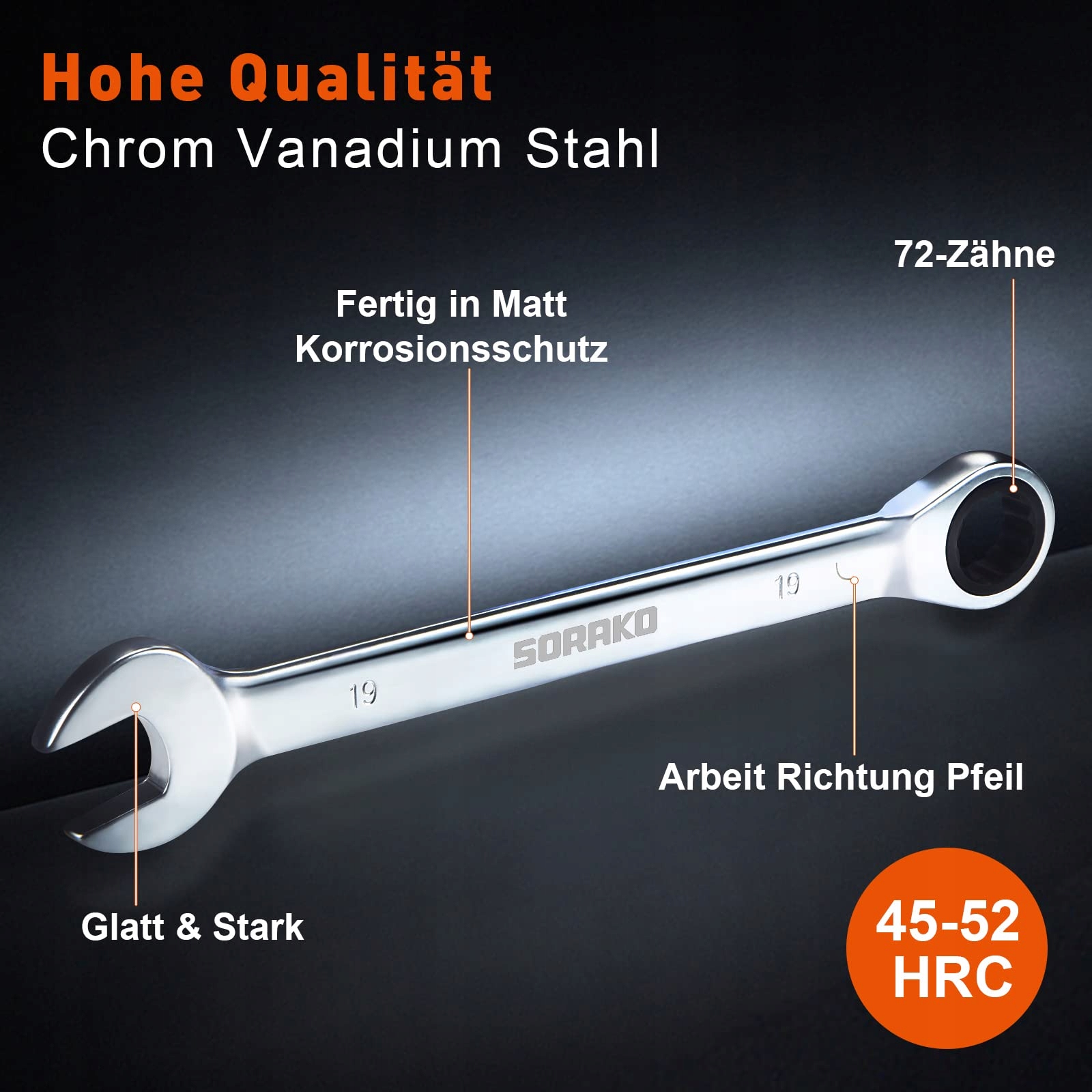 Wytrzymałość i najwyższa jakość: 12-częściowy zestaw kluczy płaskich, termicznie kute z stali chromowo-wanadowej w jakości przemysłowej o wysokiej twardości, odporności na korozję i długiej żywotności. Końce klucza płaskiego zapewniają niezawodne momenty obrotowe do dokręcania lub luzowania śrub bez zaokrąglania, wydłużony uchwyt oszczędza siłę i jednocześnie zapewnia komfort. Klucze nasadowe z matowym wykończeniem powierzchni, skuteczna ochrona przed odciskami palców