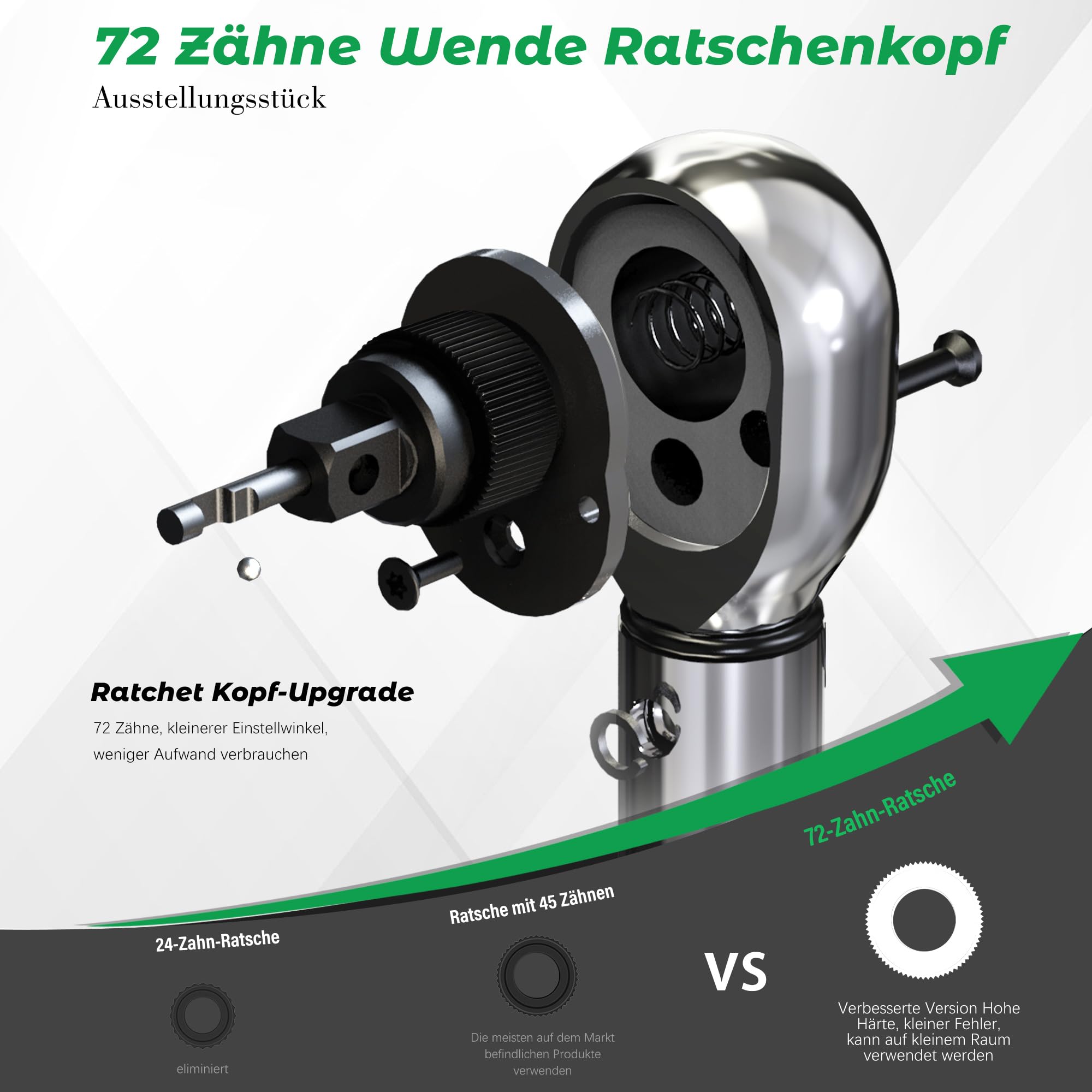 Wysokiej jakości materiały - Grzechotka wykonana z wysokotwardej stali stopowej 40CRV (chrom-wanad), antypoślizgowa, nierdzewna, odporna na korozję i wysokiej jakości, skala laserowa jest wyraźniejsza, wyższa dokładność, łatwa do odczytania. Elementy są wykonane ze stali narzędziowej S2 o dobrej odporności na uderzenia, twardości i wytrzymałości.