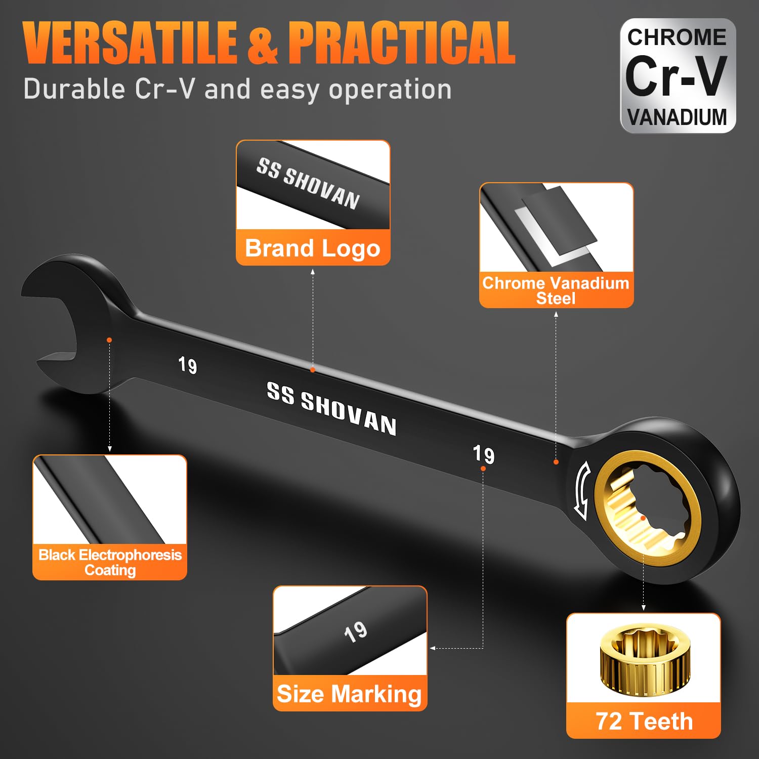 SS SHOVAN Zestaw Kluczy Grzechotkowych 8-19mm Cr-V z Etui 72 Zęby | Premium Supply
