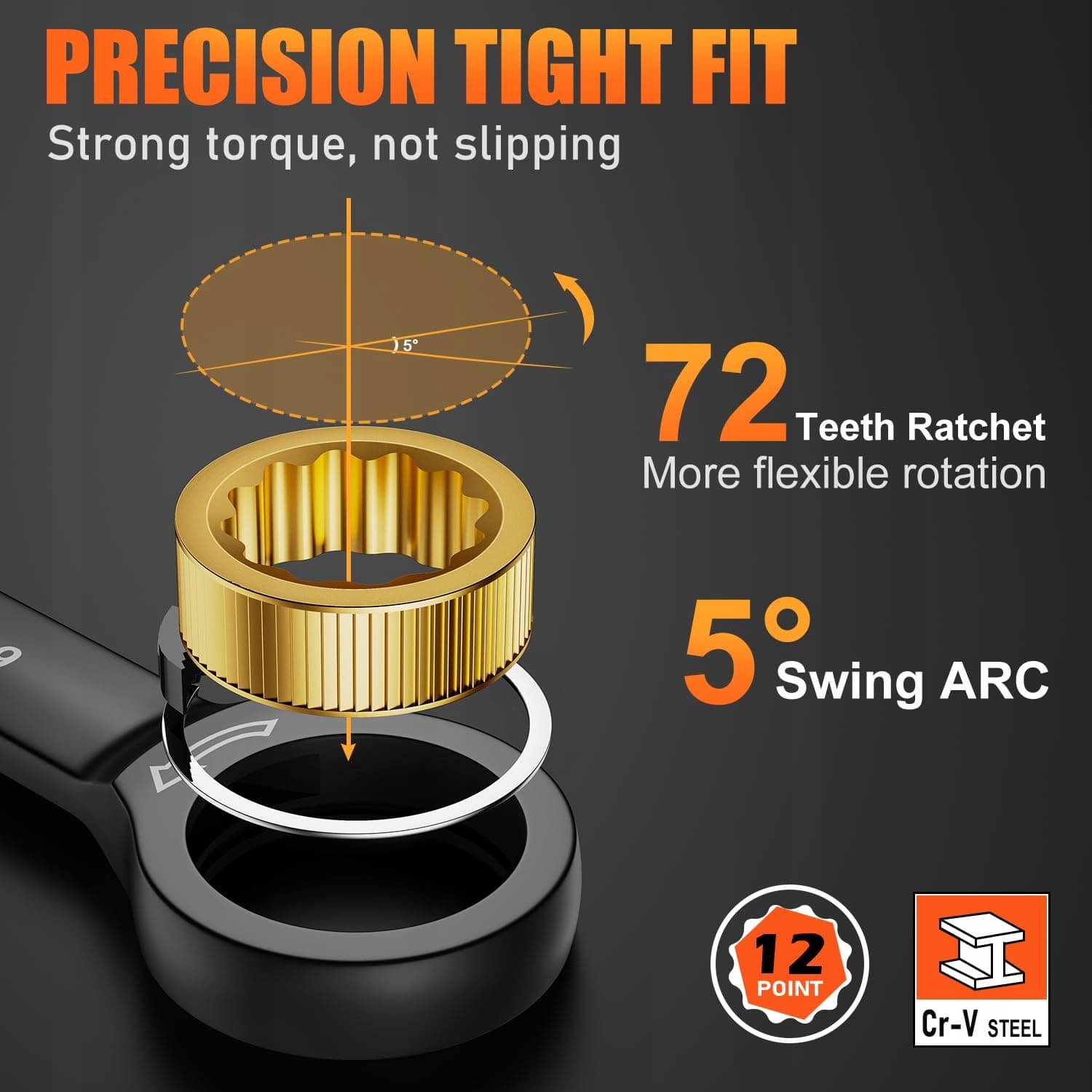 Precyzja w wąskich przestrzeniach: Projekt z 72 zębami wymaga tylko 5-stopniowego ruchu na obrót, co czyni go idealnym do pracy w ciasnych miejscach, gdzie inne narzędzia ręczne nie dają rady.