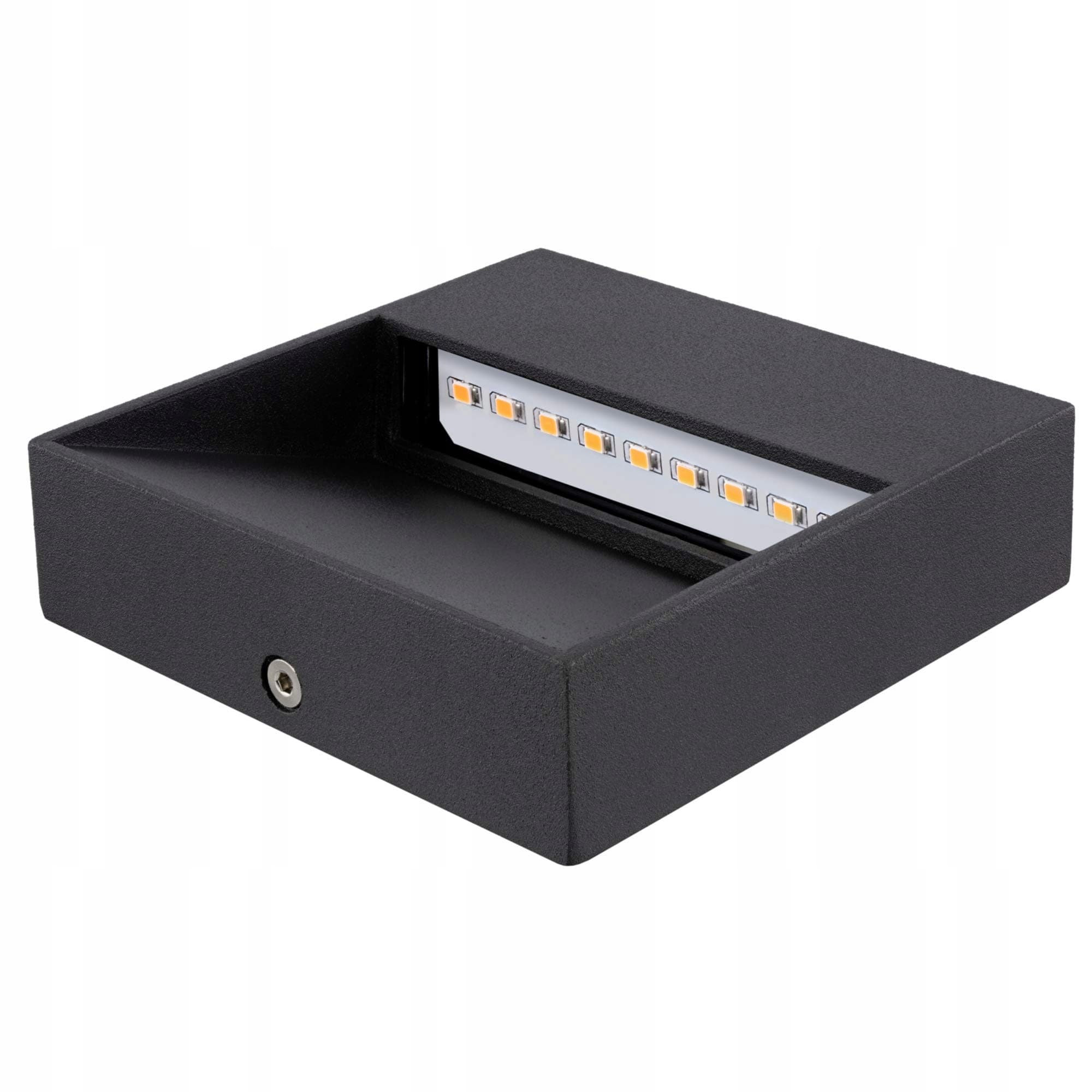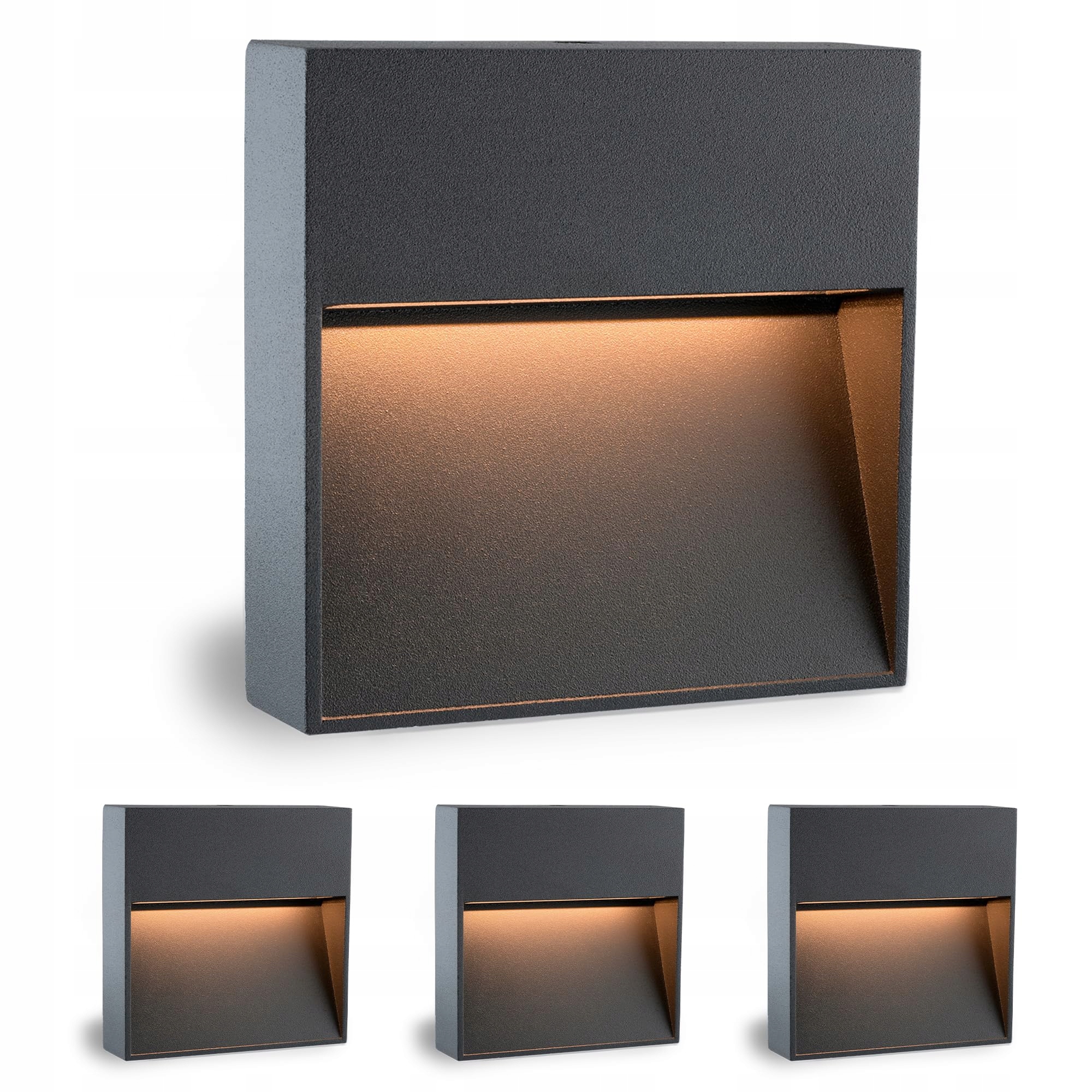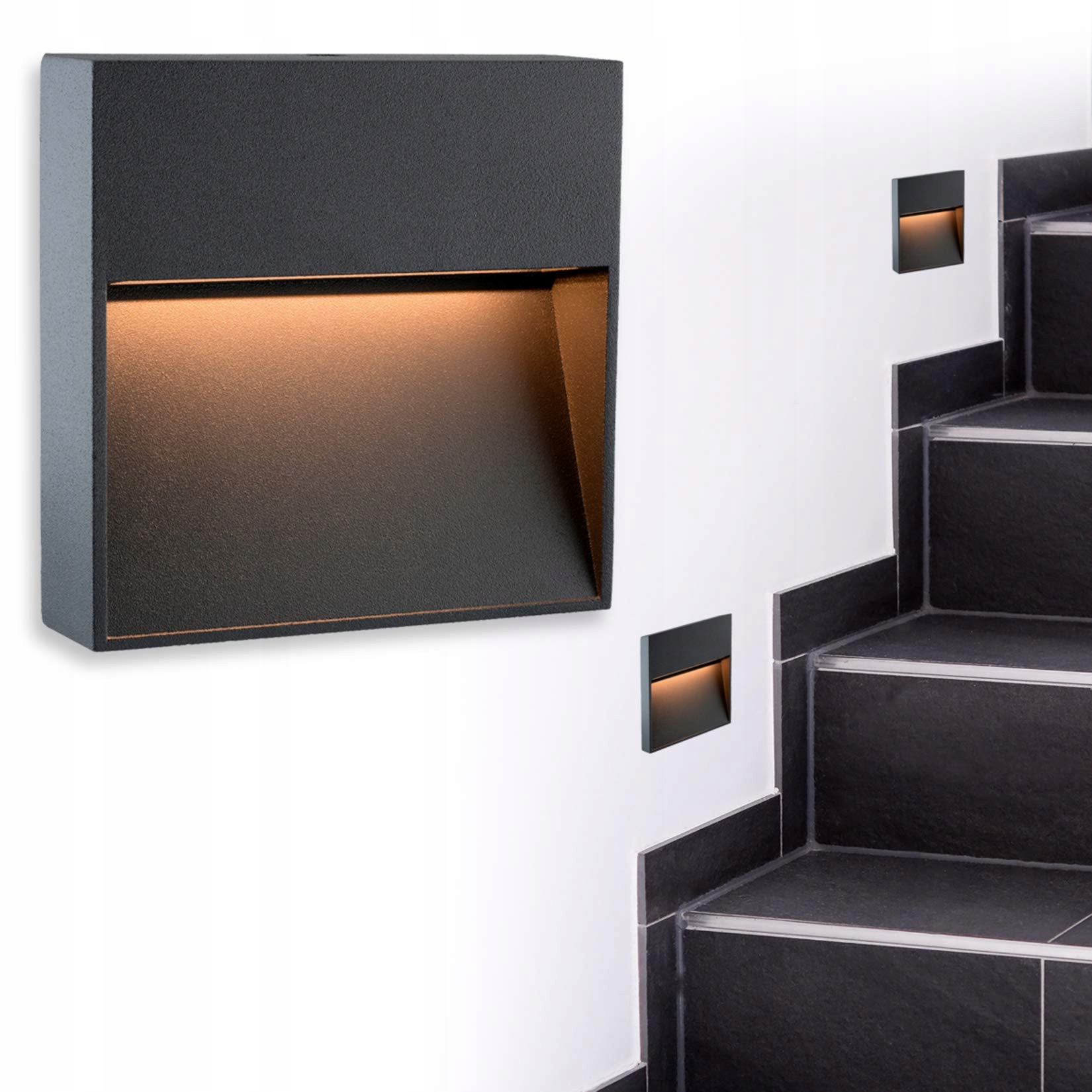 Wysokiej jakości LED-owa lampa schodowa do montażu natynkowego jako lampa ścienna, schodowa lub przypodłogowa o kwadratowym kształcie. Obudowa z odlewu aluminiowego w kolorze antracyt zapewnia przyjemne, miękkie i nieoślepiające światło