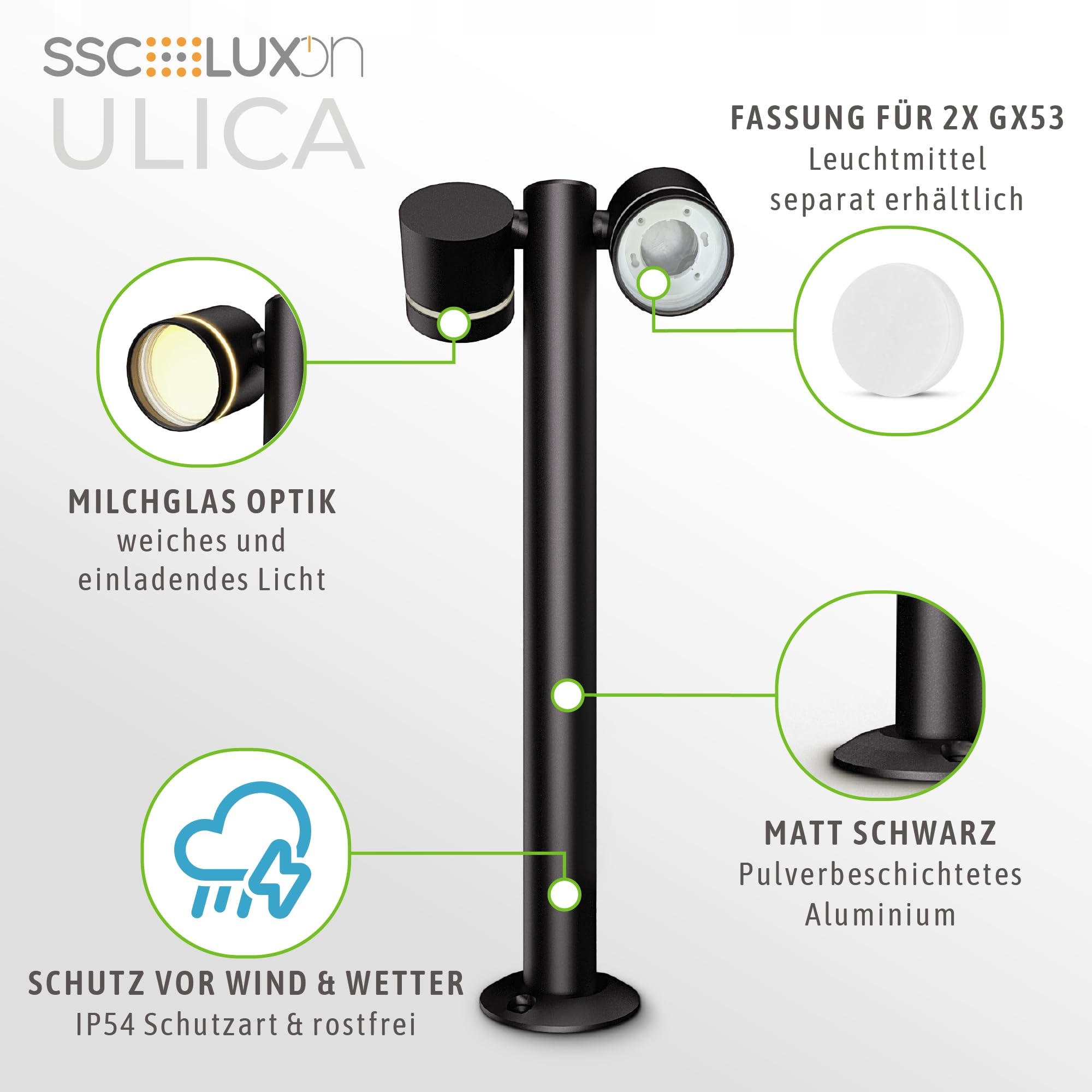 WYMIENNE LAMPY: Dostawa bez źródeł światła - Do lampy stojącej na zewnątrz pasują dwa źródła światła GX53, które można elastycznie wymieniać