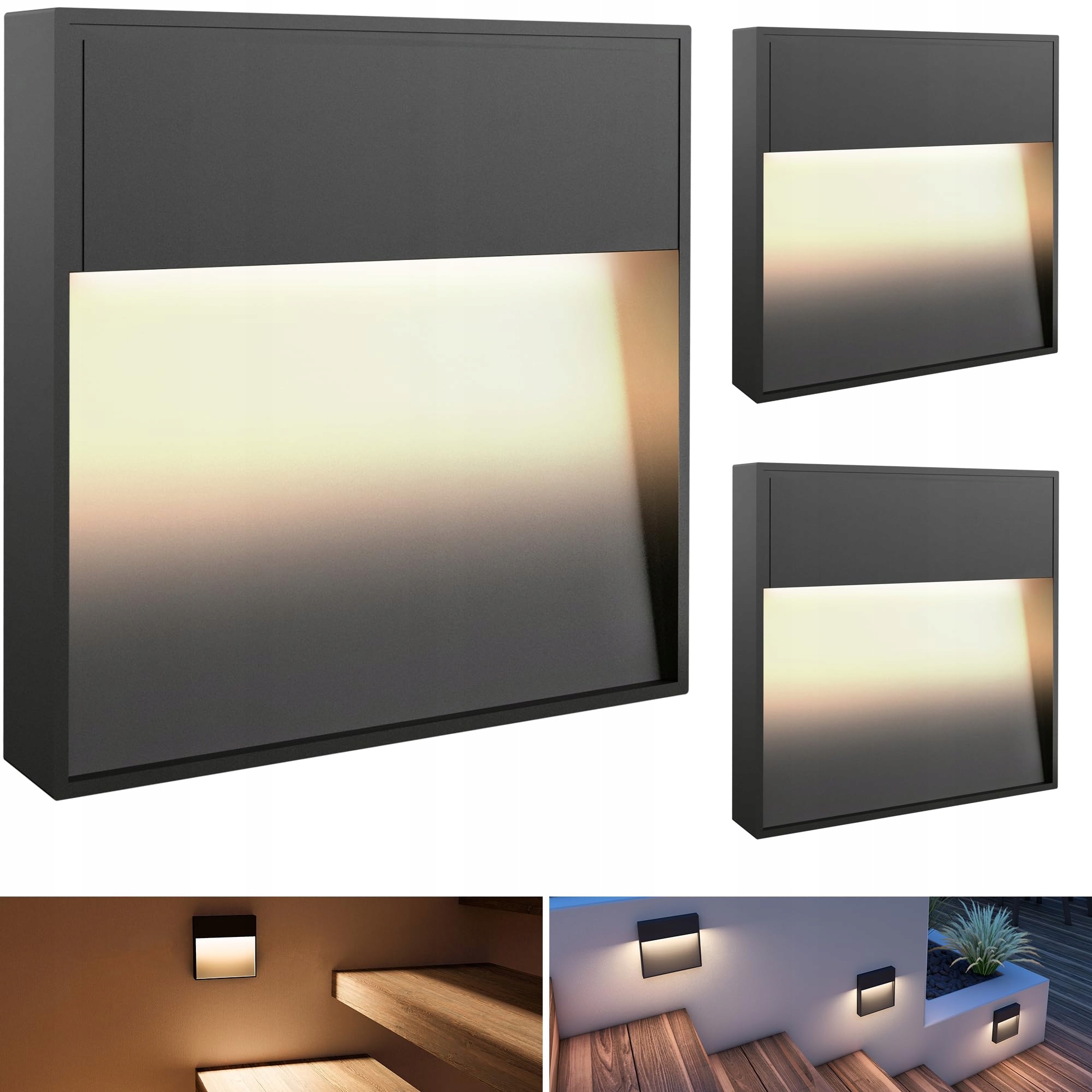 STOPIEŃ OCHRONY IP54: Ochrona przed kurzem i bryzgami wody, kwadratowe reflektory schodowe z bezpośrednim podłączeniem do 230V prądu zmiennego (bez potrzeby transformatora), idealne jako oświetlenie stopni wewnątrz i lampy schodowe na zewnątrz