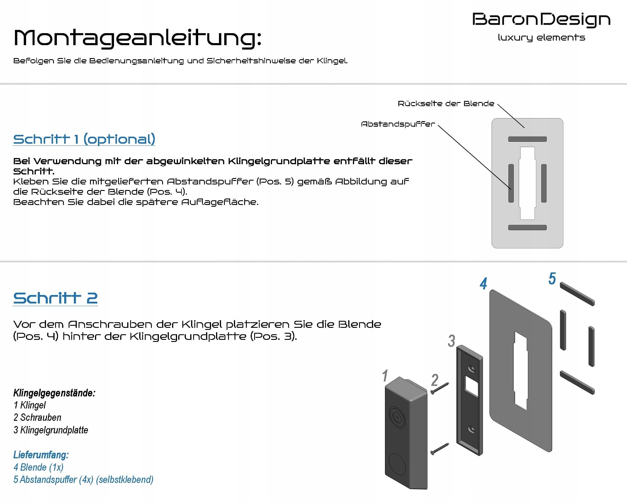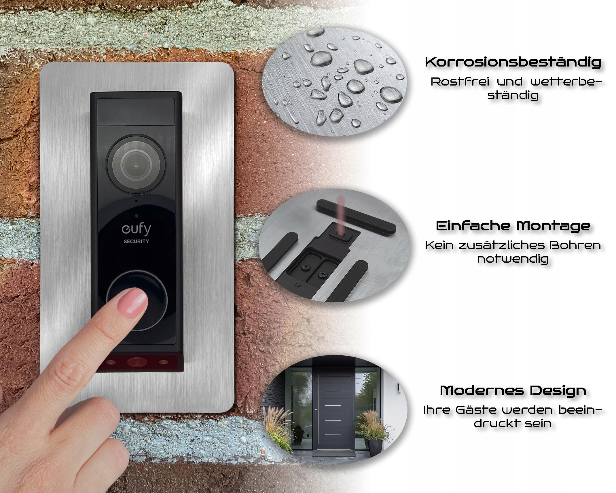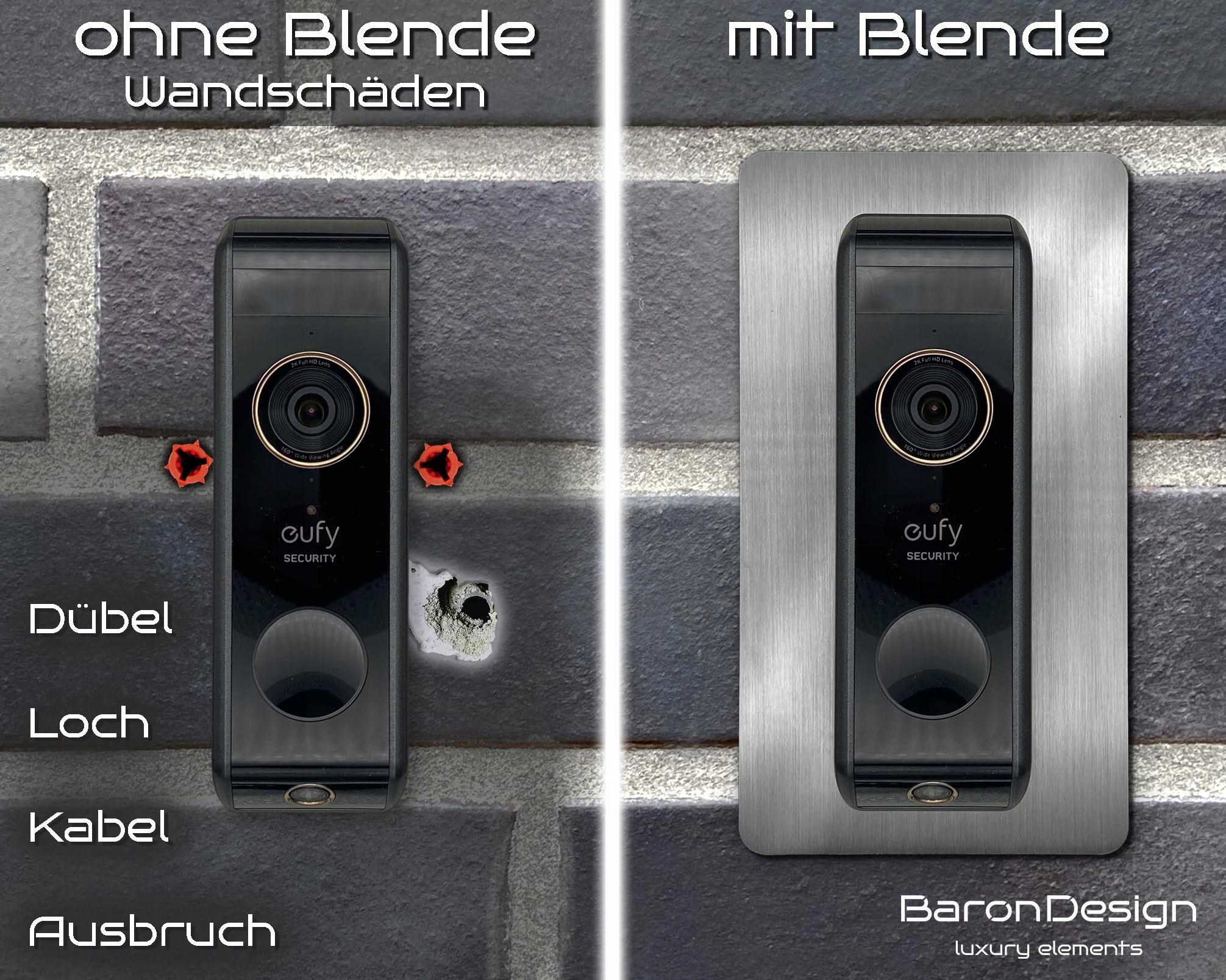 Baron Design | Osłona ze stali nierdzewnej | Akcesoria do wideodomofonu Eufy / Video Doorbell | E340, 2K HD, S330, S220, C30, C31 | Uchwyt, tabliczka, płyta do dzwonka