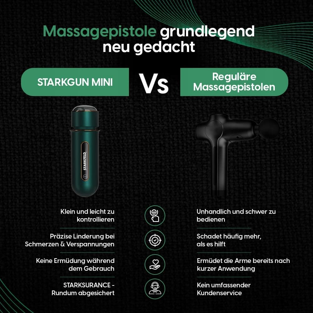 STARKFELD® STARKGUN® – Wydajny pistolet do masażu do głębokich tkanek | Cichy i efektywny (Czarny, Mini)
