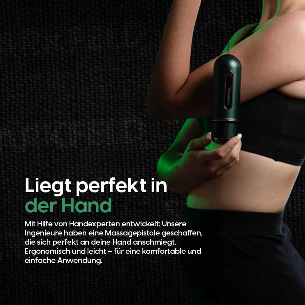 🇩🇪 NIEMIECKA INŻYNIERIA I DESIGN: Pistolet do masażu STARKFELD zachwyca niemiecką inżynierią i nowoczesnym, stylowym designem. Jakość i estetyka w jednym.