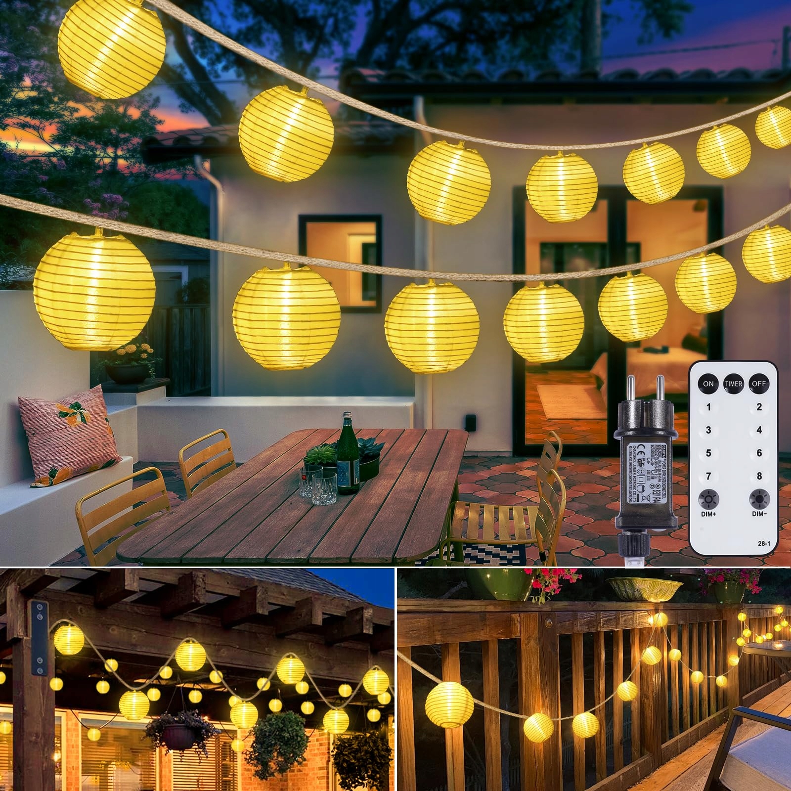 STARRYEVER 12M 40 LED Lampiony Zewnętrzne Pilot Timer Ciepłe Retro