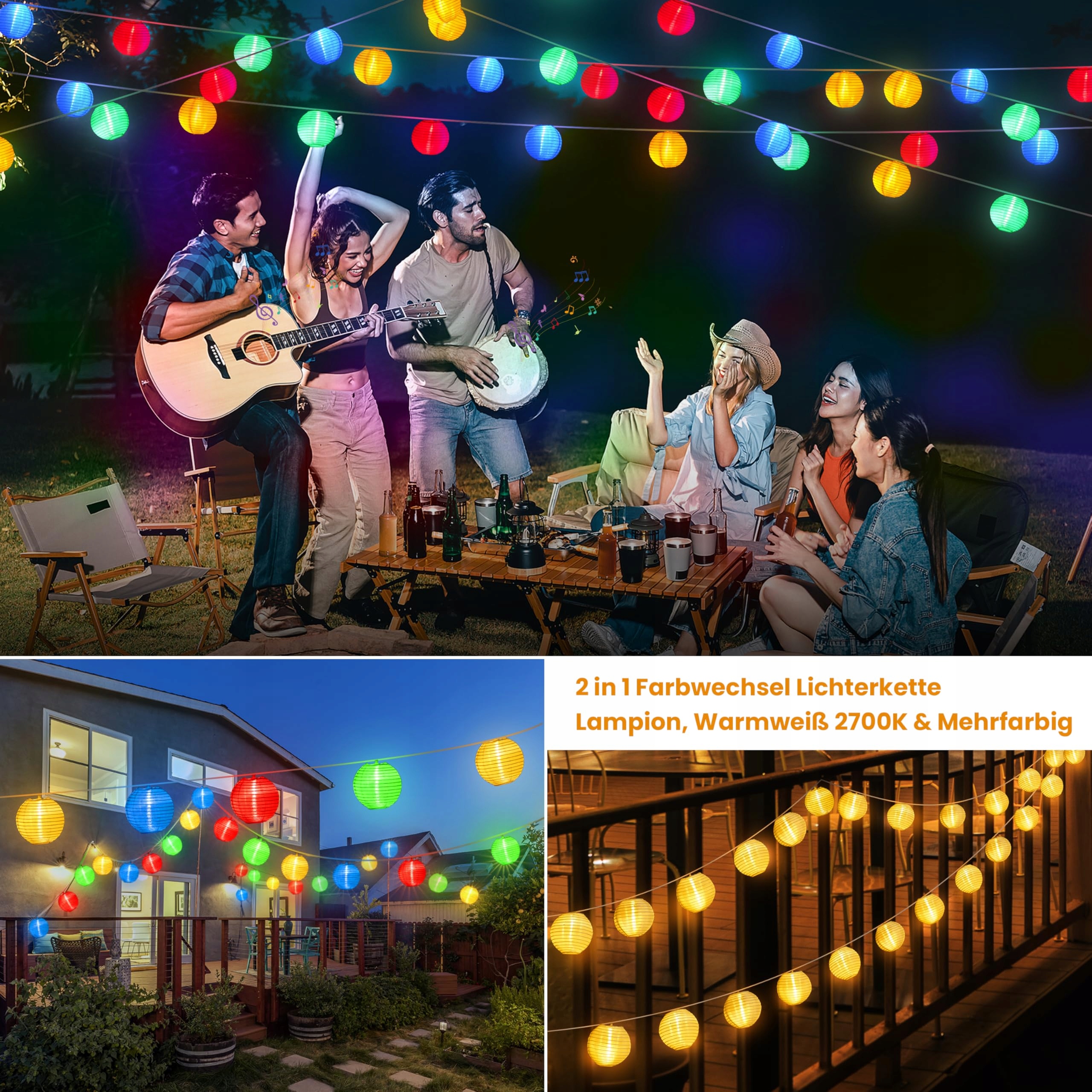 [Kolorowe i ciepłobiałe lampiony]Nasze lampiony świetlne zostały zaprojektowane, aby zapewnić Ci większy wybór kolorów. Za pomocą pilota możesz przełączać się między kolorowym a ciepłobiałym światłem. Ciepłobiałe lampiony przynoszą ciepło wieczorem, podczas gdy kolorowe lampiony mogą stworzyć bogatą atmosferę na święta.