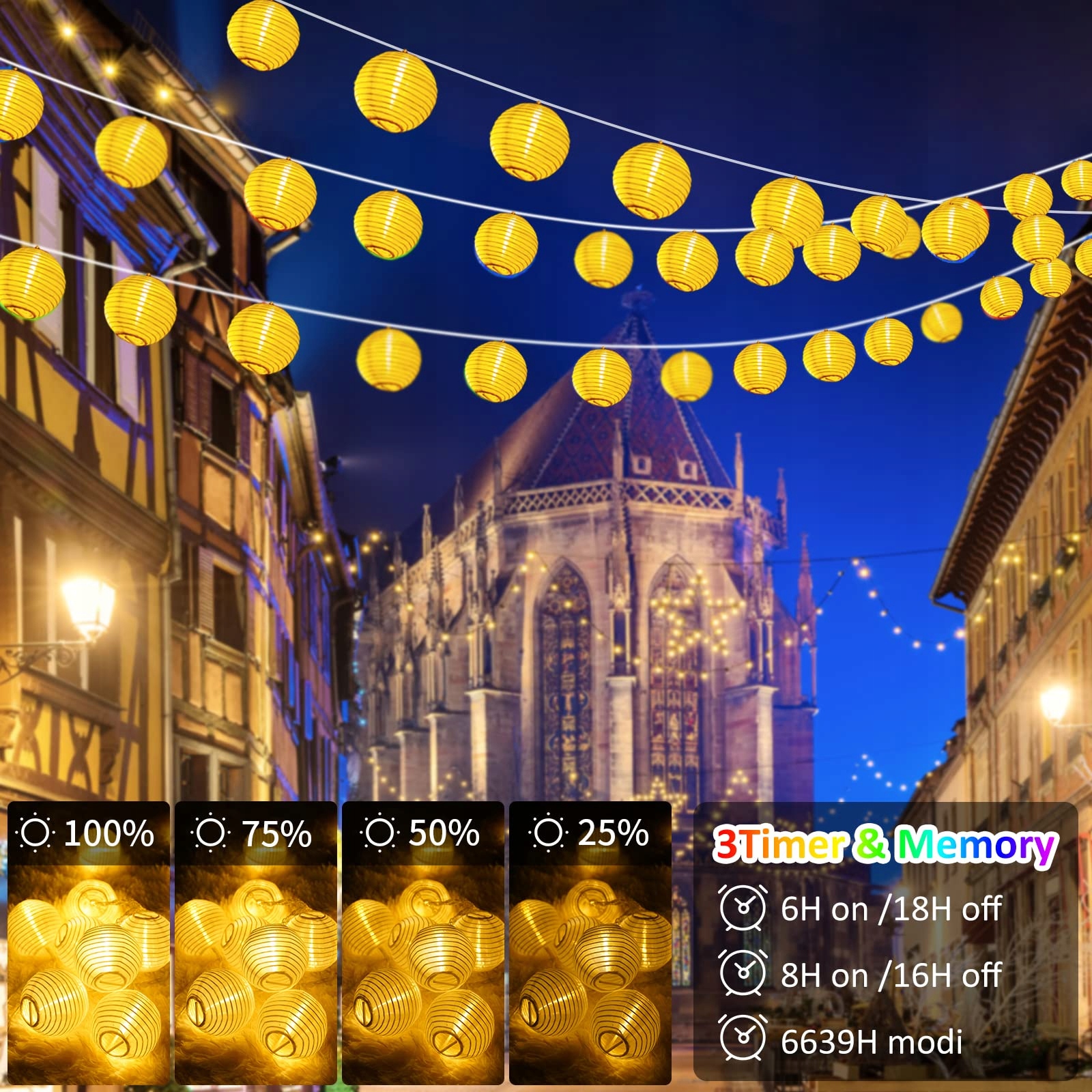 [Ciepłobiałe i zimnobiałe łańcuchy świetlne]Nasze łańcuchy świetlne z lampionami zostały zaprojektowane, aby zapewnić więcej opcji kolorystycznych. Każdy zestaw ma 2 kolory. Wygodnie jest przełączać światło między trybem ciepłobiałym a trybem dziennobiałym. Nie musisz kupować 2 zestawów i przemieszczać jednego, aby ręcznie zastąpić inny.