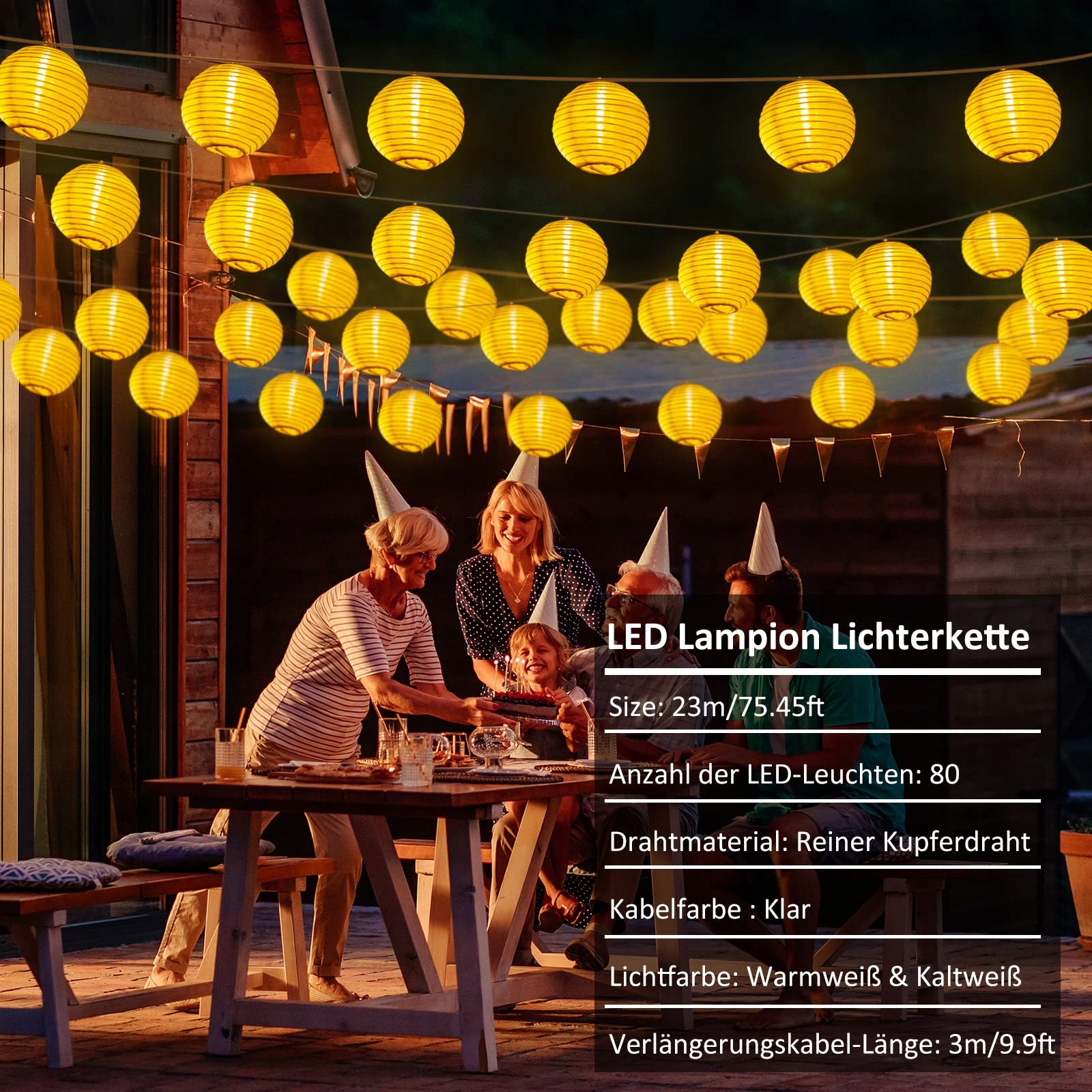 StarryEver 20M LED Lampiony Łańcuch Świetlny Na Zewnątrz Zasilanie, 11 Trybów Łańcuch Świetlny z Pilotem, 80 LED Chińskie Lampiony, Ciepłobiała i Zimnobiała Iluminacja Łańcuchy Świetlne Na Zewnątrz do Patio Ogrodu