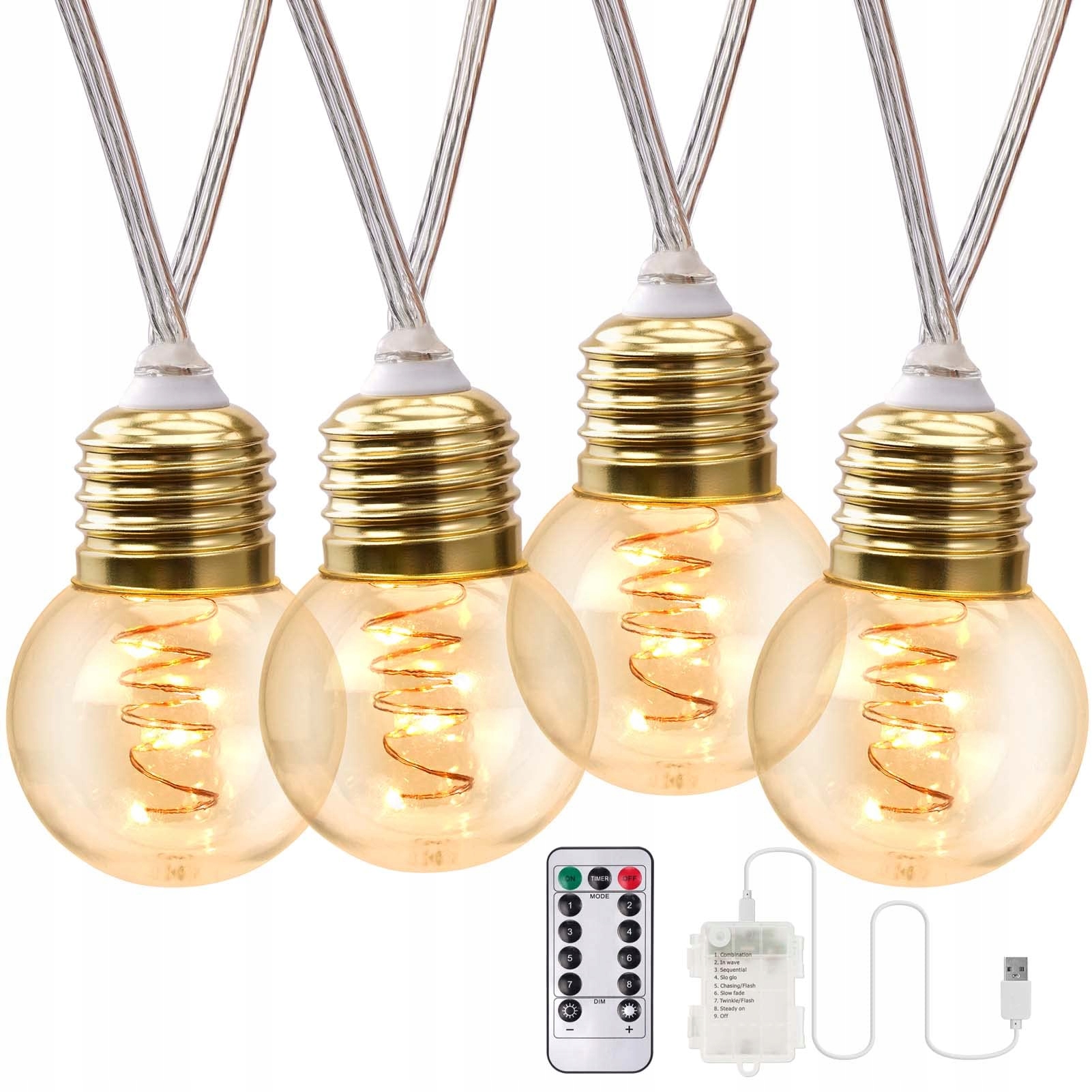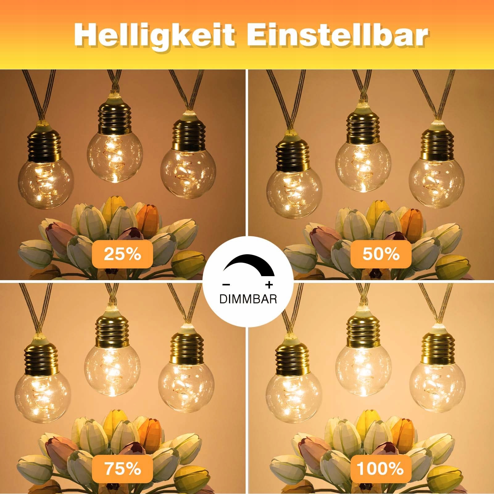 StarryEver G45 LED Lichterkette Außen, 20 LED Lichterkette Batterie, 6M USB Lichterkette Innen Warmweiß, 8 Modi IP65 Glühbirnen Beleuchtung Dimmbar mit Fernbedienung für Outdoor Garten Party Café