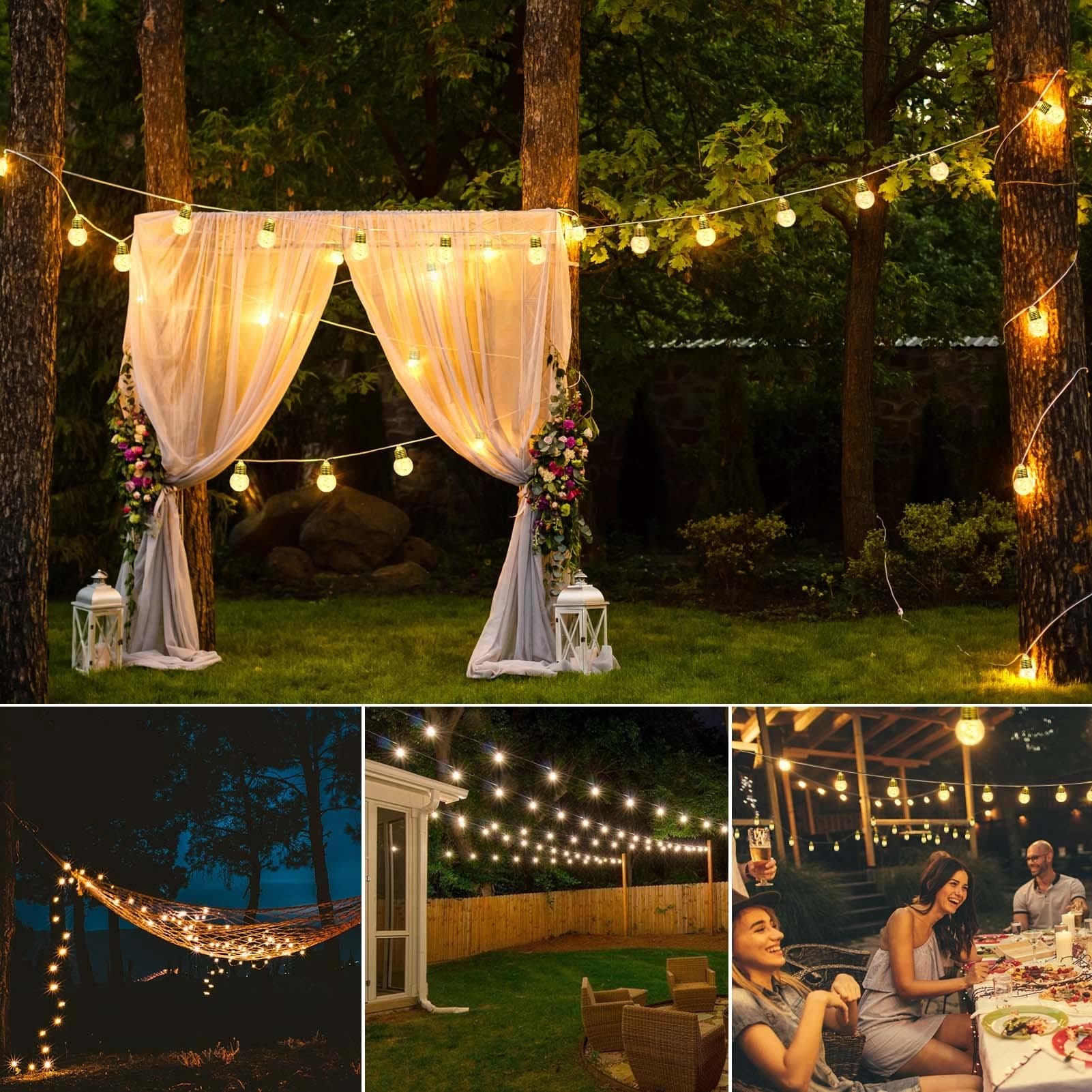 💡[Wodoodporność IP65 i odporność na stłuczenia] Mocne gumowe sznury i specjalnie zaprojektowane perforowane żarówki, te girlandy świetlne działają dobrze w każdych warunkach pogodowych, takich jak słońce, deszcz, wiatr, śnieg itp. Żarówki LED G45 są wykonane z plastiku odpornego na uderzenia, znacznie bardziej odporne na stłuczenia niż wszystkie szklane żarówki.