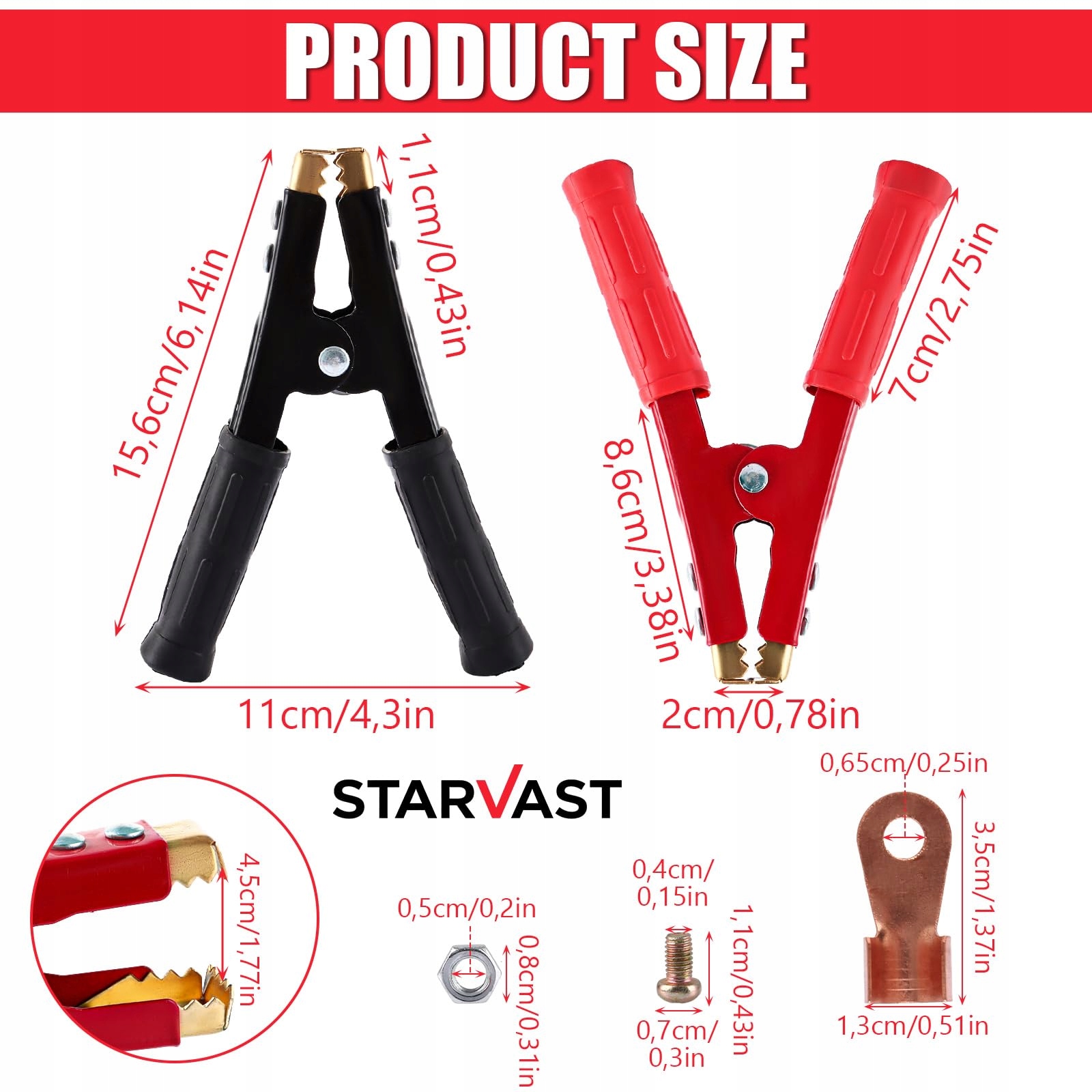 STARVAST 6 Sztuk Krokodylki 1000A 16CM Do Akumulatorów Samochodowych | Premium Supply