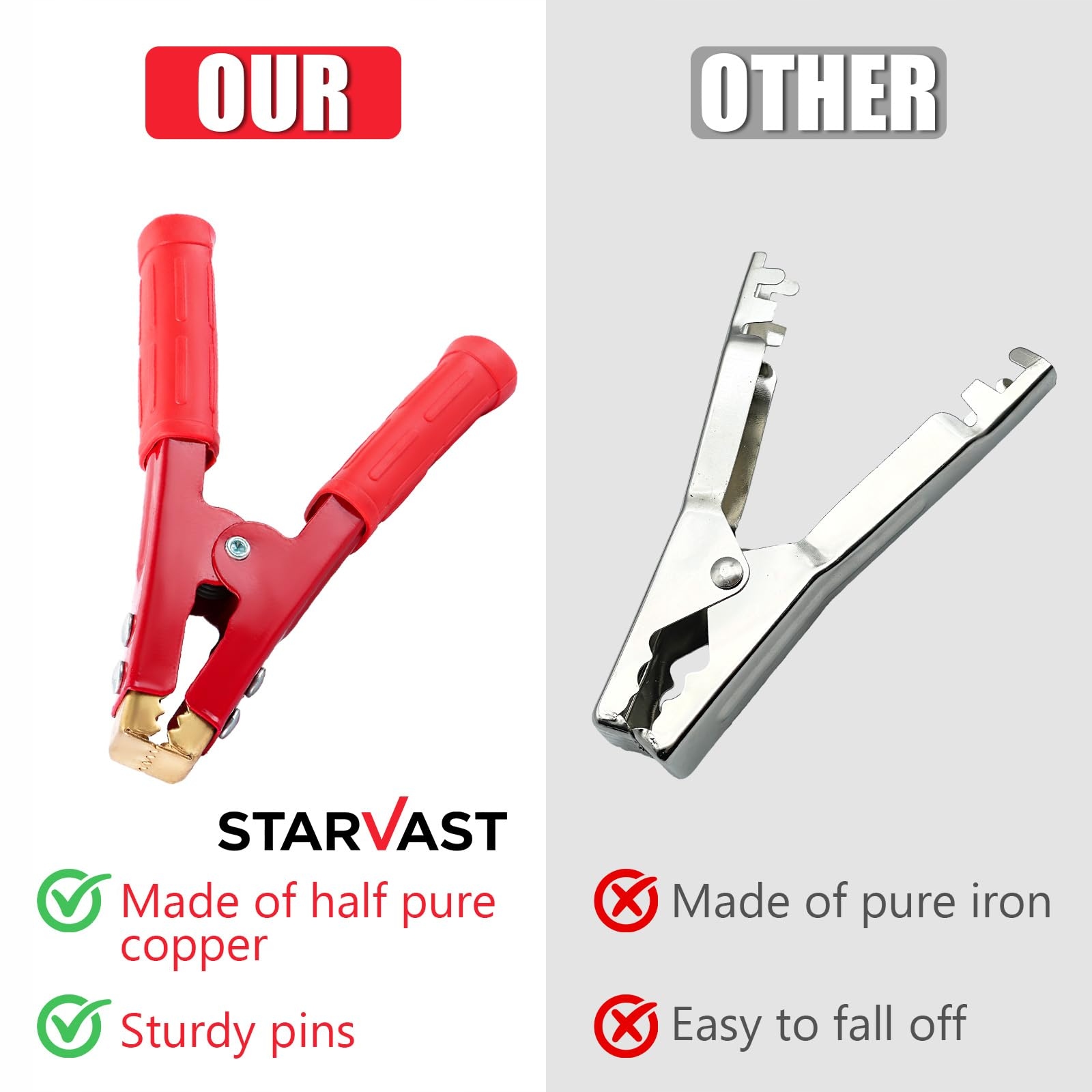 STARVAST 6 sztuk 1000A duże kleszcze krokodylkowe, 16CM zaciski do akumulatora samochodowego, zaciski do ładowarki akumulatora z czystej miedzi, izolowane zaciski do kabli rozruchowych z izolowaną osłoną na kable akumulatorowe 16-35mm