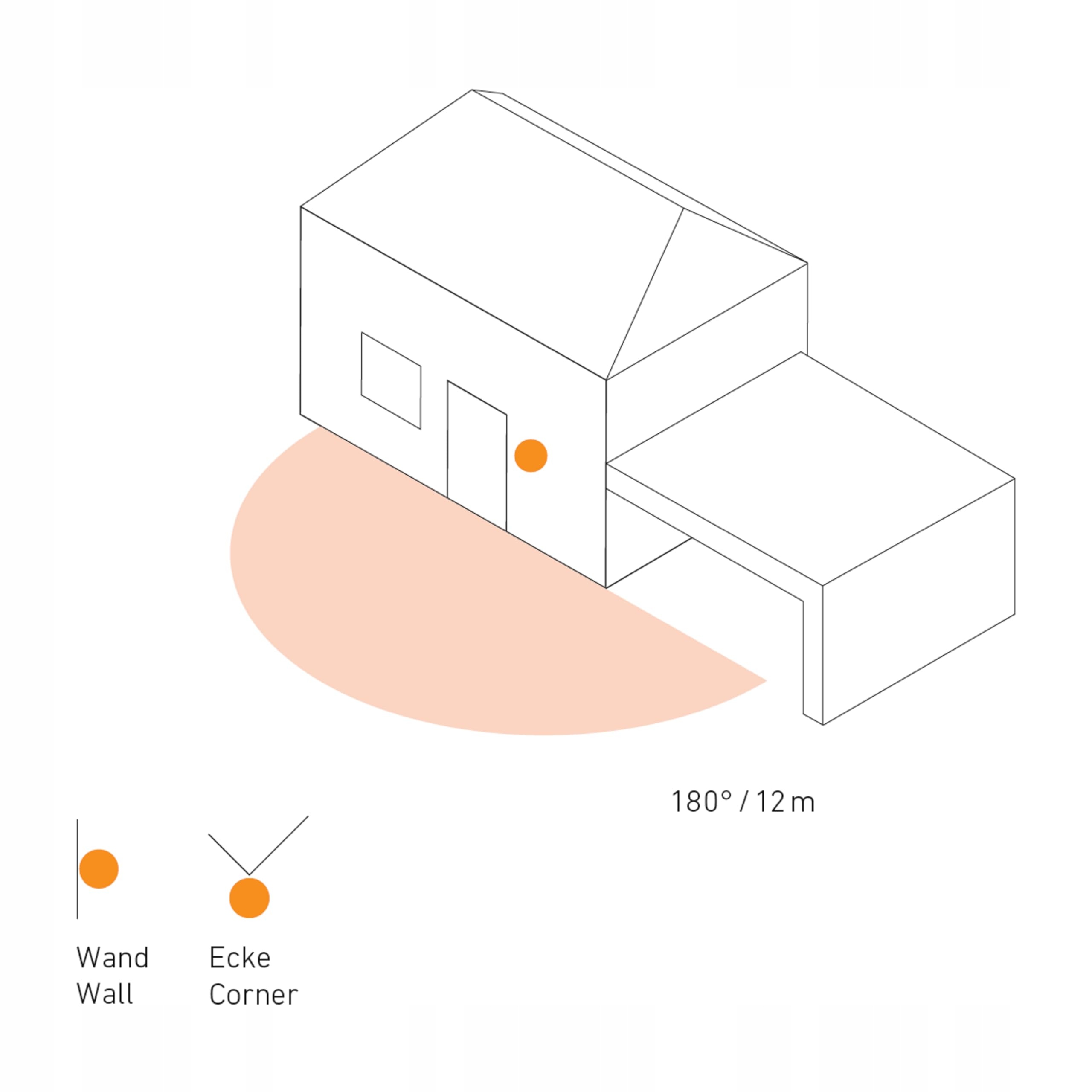 Zasięg można ustawić, obracając soczewkę wieloogniskową do maks. 12 m lub maks. 5 m, czas (5 s - 15 min) oraz próg zmierzchu (2-2000 lx) regulowane są płynnie za pomocą pokrętła