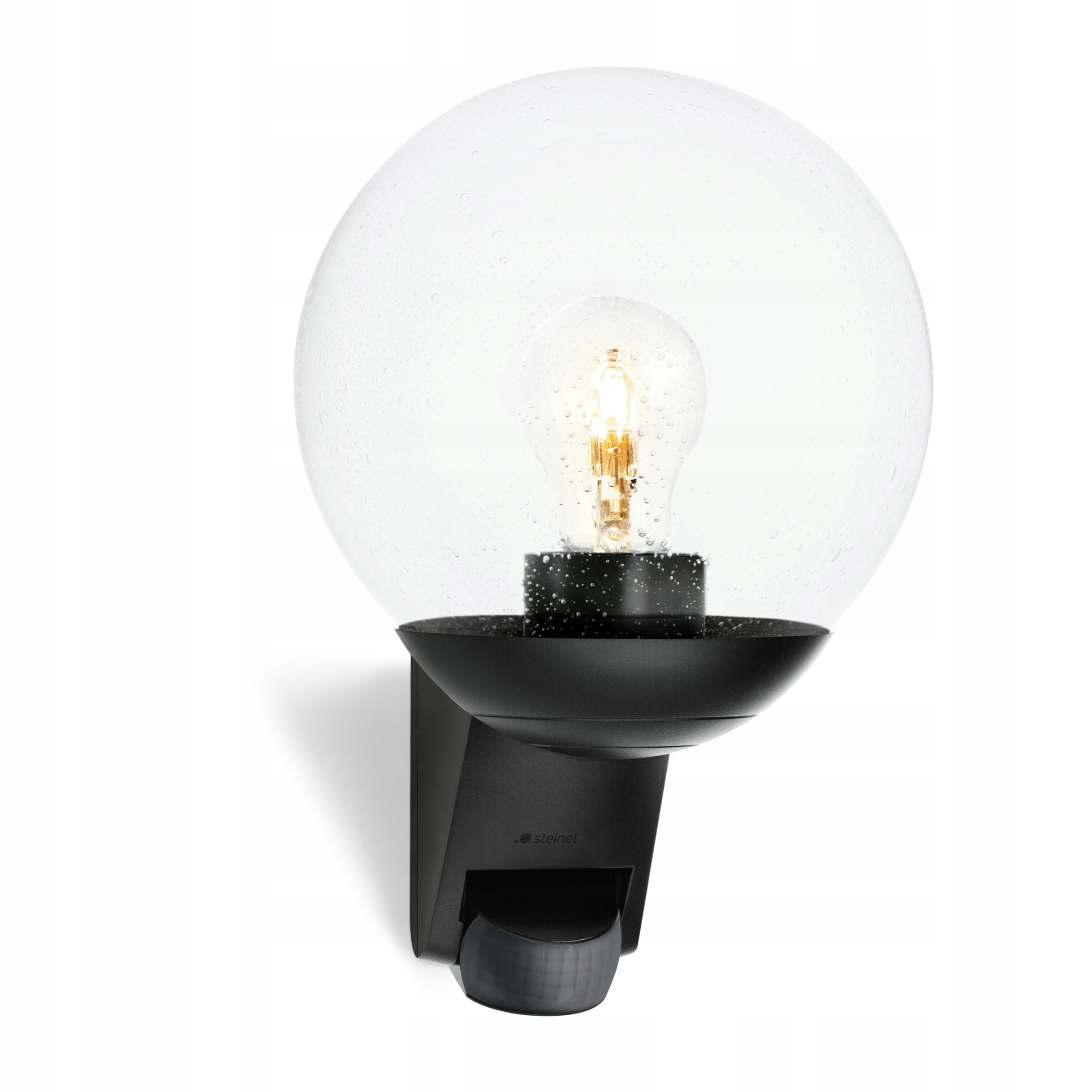 Steinel zewnętrzna lampa ścienna L 595 S czarna z czujnikiem ruchu – lampa ścienna z kulą szklaną na zewnątrz, czujnik PIR 180° do 10 m, czujnik zmierzchu, odporna na warunki atmosferyczne IP44, oprawka E27, do domu i na taras