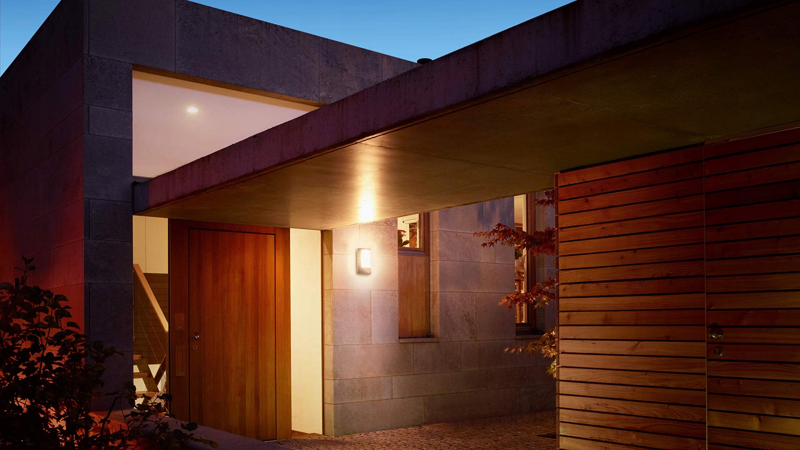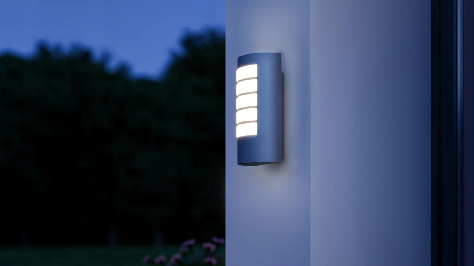 Lampa ścienna L 12 z odporna na warunki atmosferyczne obudową z aluminium (IP44) i charakterystycznymi poprzeczkami łączy nowoczesny design z uznaną technologią oświetleniową Steinel