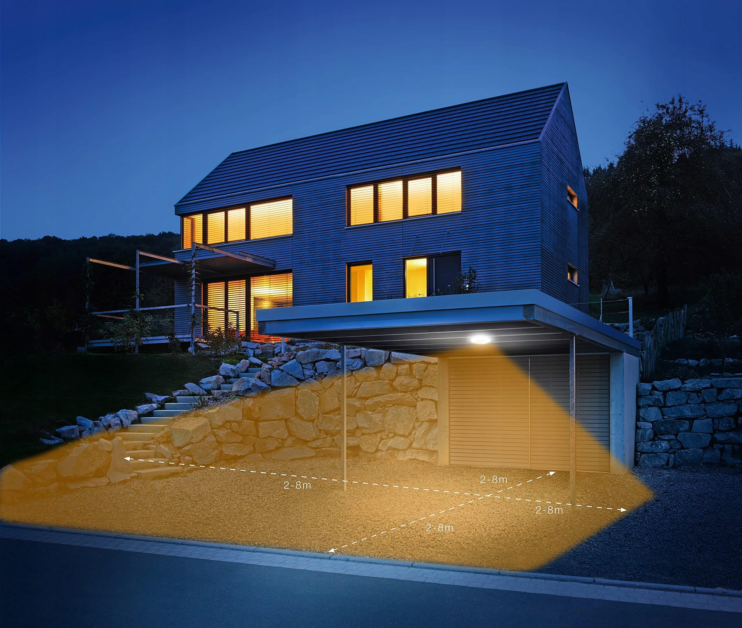 Precyzyjne wykrywanie ruchu dzięki 4 czujnikom podczerwieni, które można ustawić w 4 kierunkach na maksymalny zasięg od 2 do 8 m przy wysokości montażu do 6 m