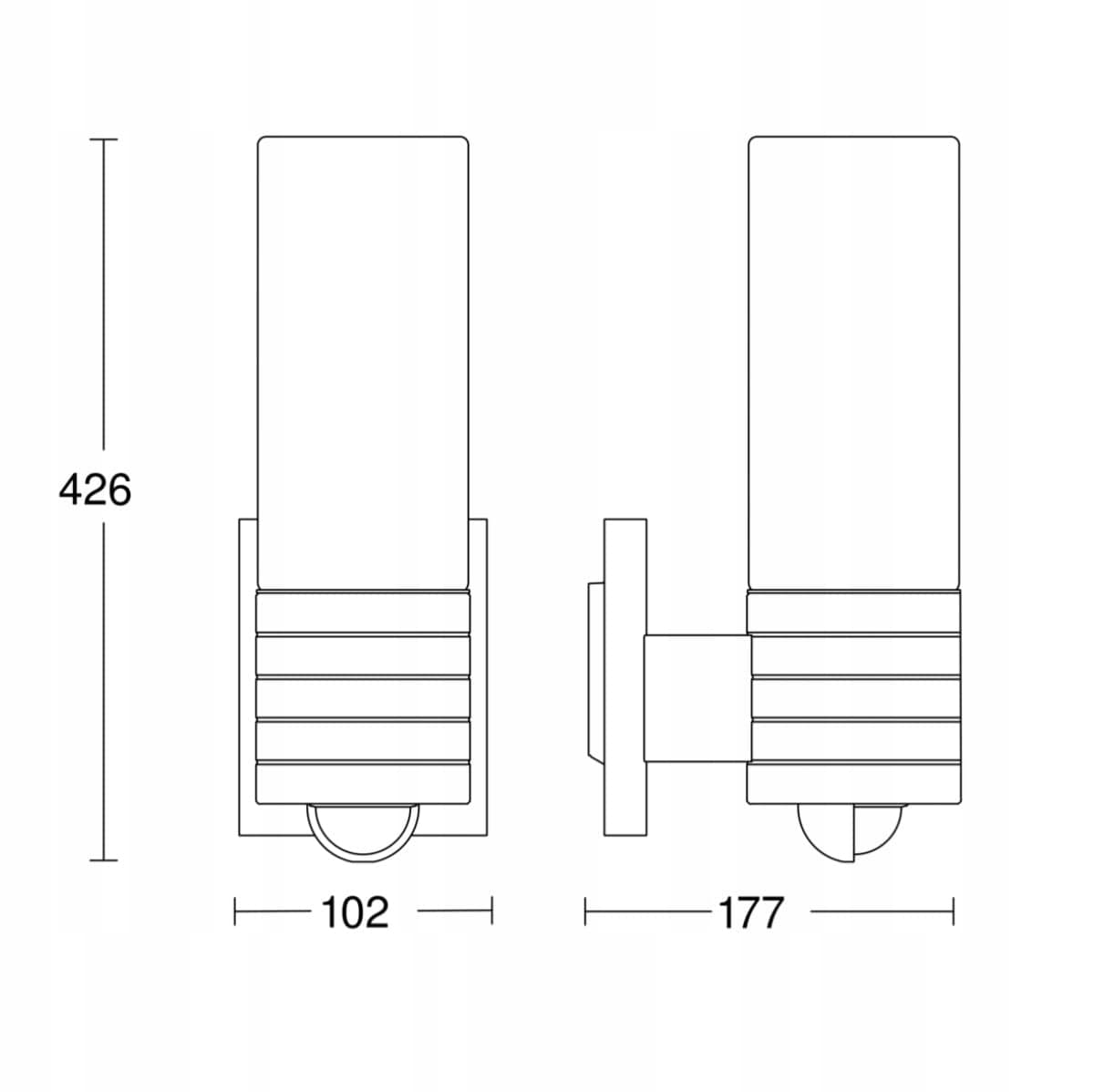W zestawie: źródło światła LED, materiały montażowe (2x śruby, 2x kołki, 2x uszczelki) oraz osłony czujnika; wymiary (dł. x szer. x wys.): 177 x 102 x 426 mm; waga: 1,74 kg; zasilanie sieciowe: 230 – 240 V / 50 Hz; numer artykułu: 007874
