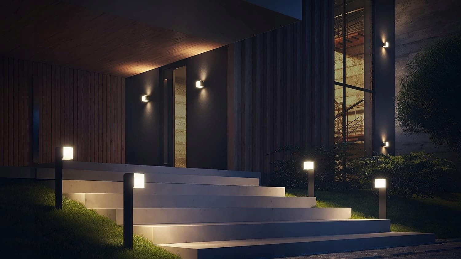NOWOCZESNA LAMPA ZEWNĘTRZNA - Zewnętrzna lampa LED o jasności 616 lm i zużyciu 9,1 W rozprowadza przyjemne ciepło-białe światło na ścianie zewnętrznej i elewacji dzięki zmiennemu startowi miękkiego światła
