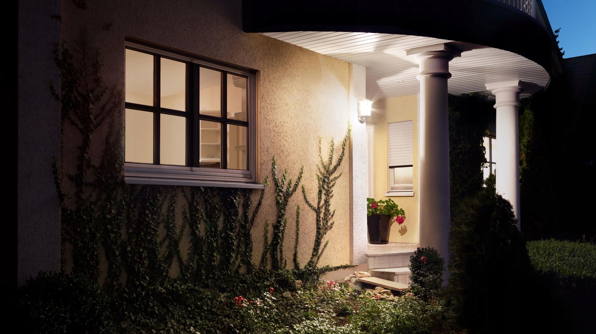 Steinel zewnętrzna lampa ścienna L 190 S biała, czujnik ruchu 180°, zasięg 12 m, miękkie światło, światło podstawowe, światło ciągłe
