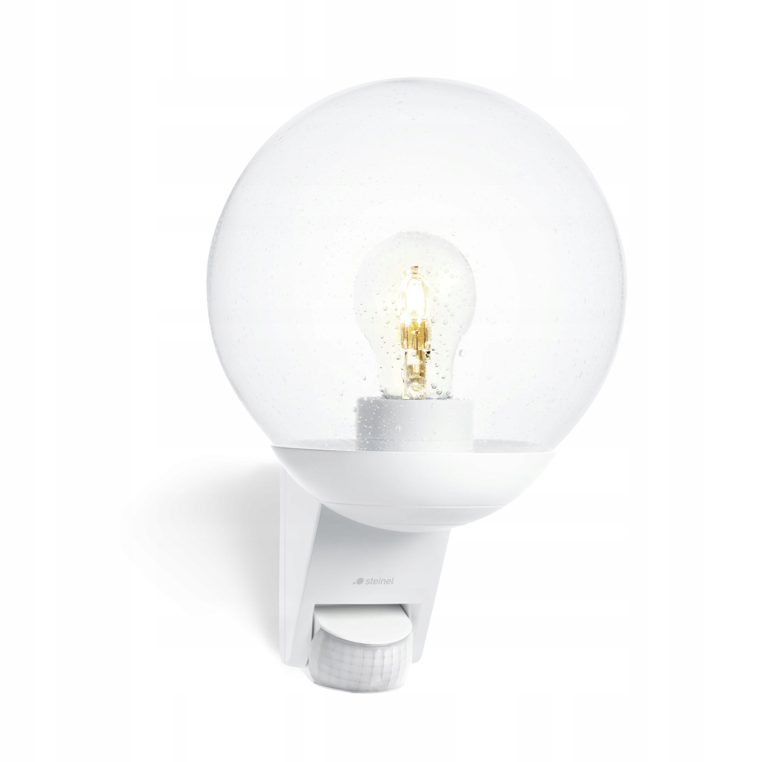 Steinel zewnętrzna lampa ścienna L 585 S biała, czujnik ruchu 180°, maks. zasięg 10 m, klasyczna, dmuchany na gorąco korpus szklany, biały - bez źródła światła