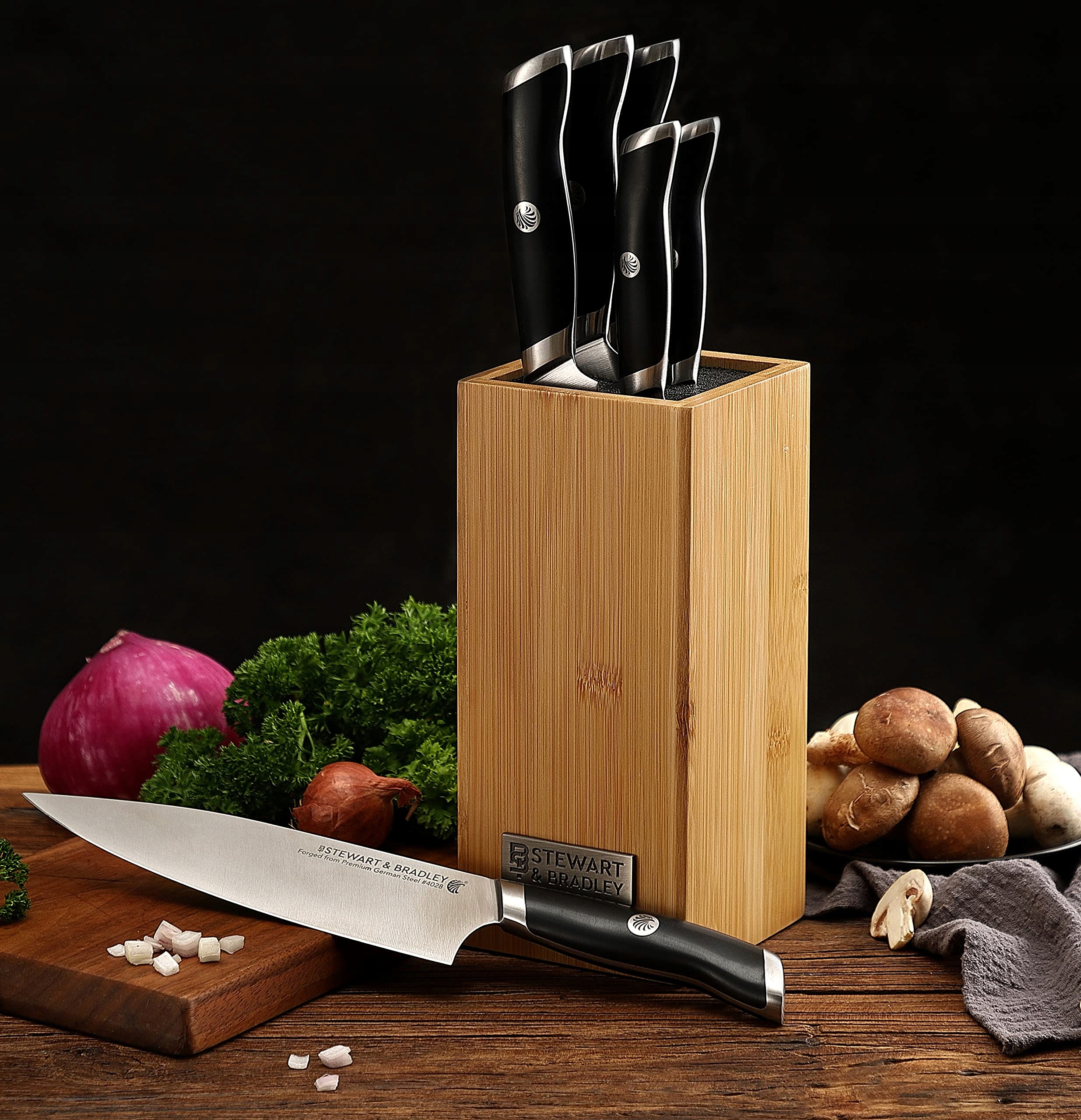 ✅ Nie zadowalaj się mniej: Czy kiedykolwiek używałeś bloku na noże z rowkami, które miały chronić twoje noże? Czy byłeś rozczarowany, jak wyglądał po kilku miesiącach, z odpryskami i wgnieceniami na całym bloku? Przestań teraz i pomyśl, że uniwersalny blok na noże STEWART & BRADLEY trzyma wszystkie twoje noże ciasno.