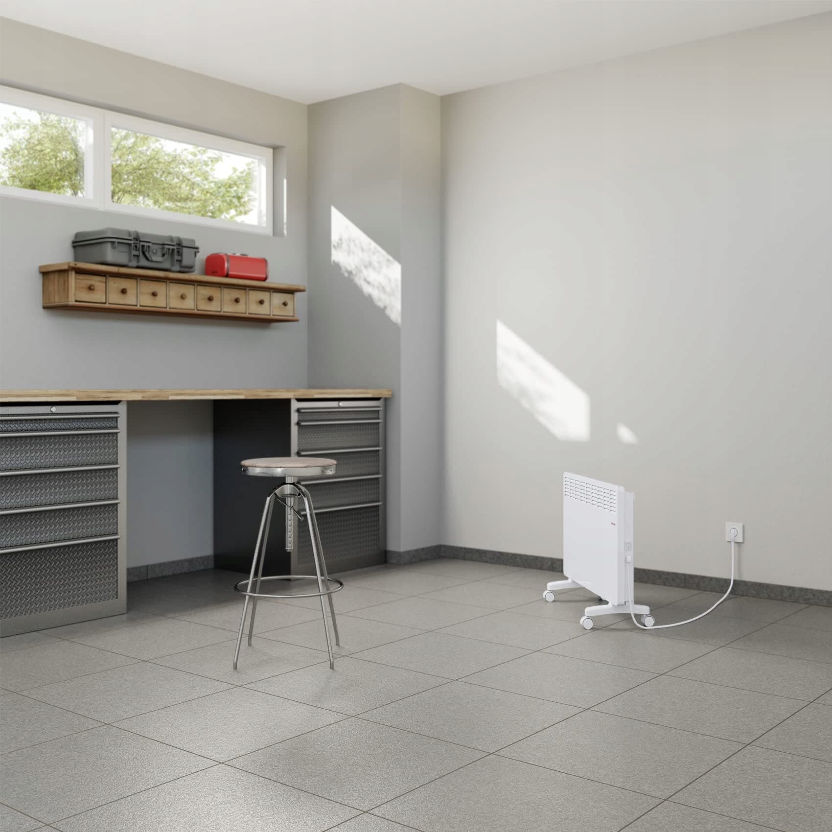 WYPOSAŻENIE: Wydajny, płaski grzejnik elektryczny o wysokiej mocy grzewczej; Trwały grzejnik rurowy ze stali nierdzewnej z lamelami stalowymi, nie rdzewieje; Z podświetlanym włącznikiem/wyłącznikiem; Konwektor wolnostojący posiada certyfikat TÜV Süd i spełnia wszystkie istotne wymagania TÜV
