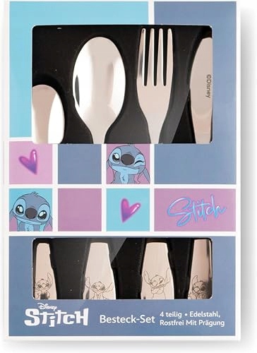 STITCH Zestaw Sztućców Dla Dzieci 4 Części Stal Nierdzewna Do Zmywarki