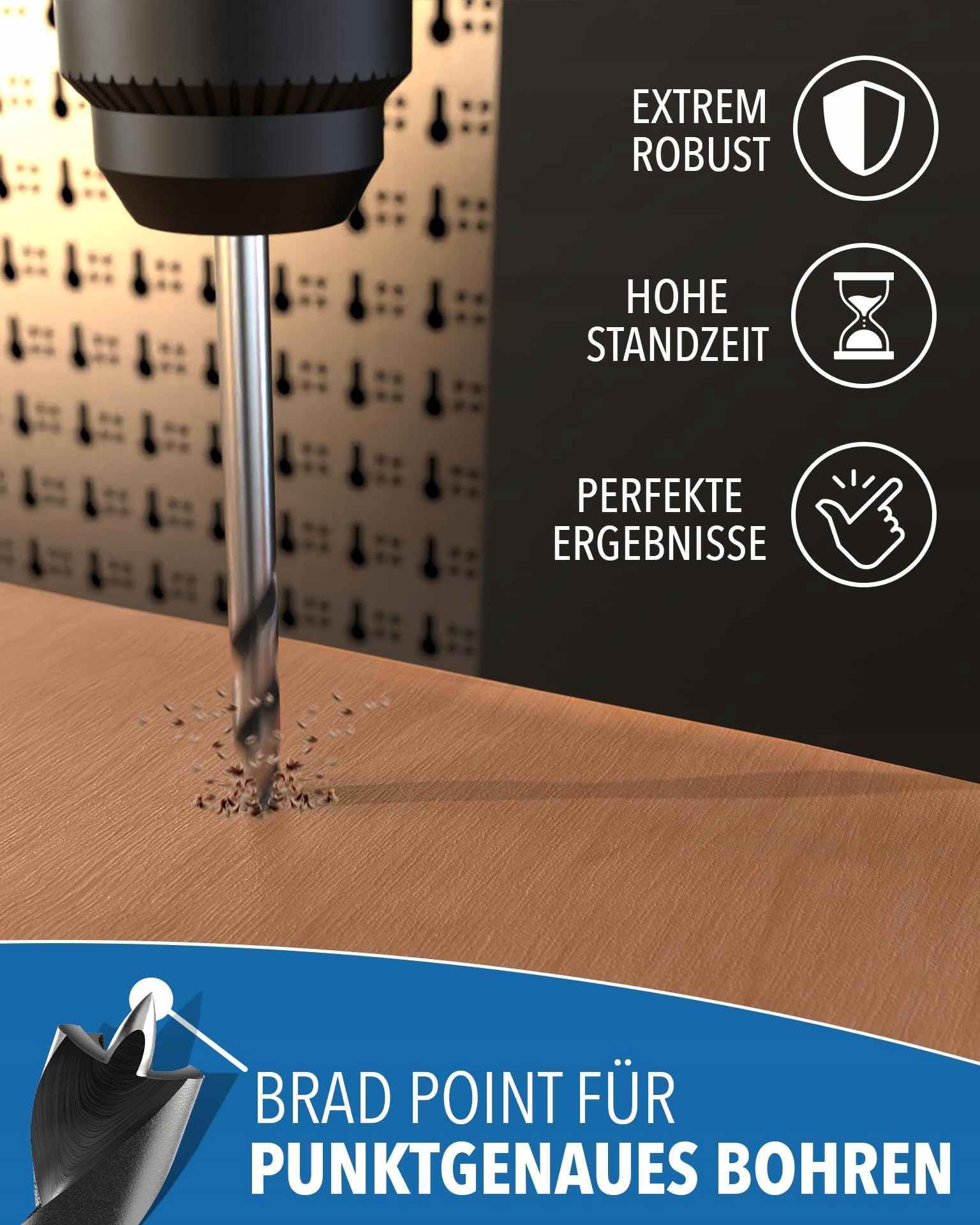 ✅ 𝐃𝐎𝐃𝐀𝐓𝐊𝐎𝐖𝐄 𝐙𝐀𝐋𝐄𝐃𝐍𝐈𝐄 - Punkt Brad umożliwia precyzyjne i bezwyszczerbne wiercenie, niezależnie od materiału. Długie wiertła do drewna idealnie nadają się do drewna twardego, miękkiego oraz materiałów płytowych.