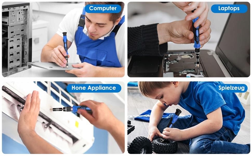 Humanizowany design: Ten elektroniczny zestaw wkrętaków został profesjonalnie zaprojektowany, aby maksymalizować Twoje umiejętności naprawcze. Wkrętak ma uchwyt z cząsteczek i gumowany, ergonomiczny uchwyt z obrotową górą, co zapewnia wygodny chwyt i płynne obracanie. Magnetyczny uchwyt na bity przenosi magnetyzm na bit wkrętaka, co pomaga w obsłudze małych śrub.