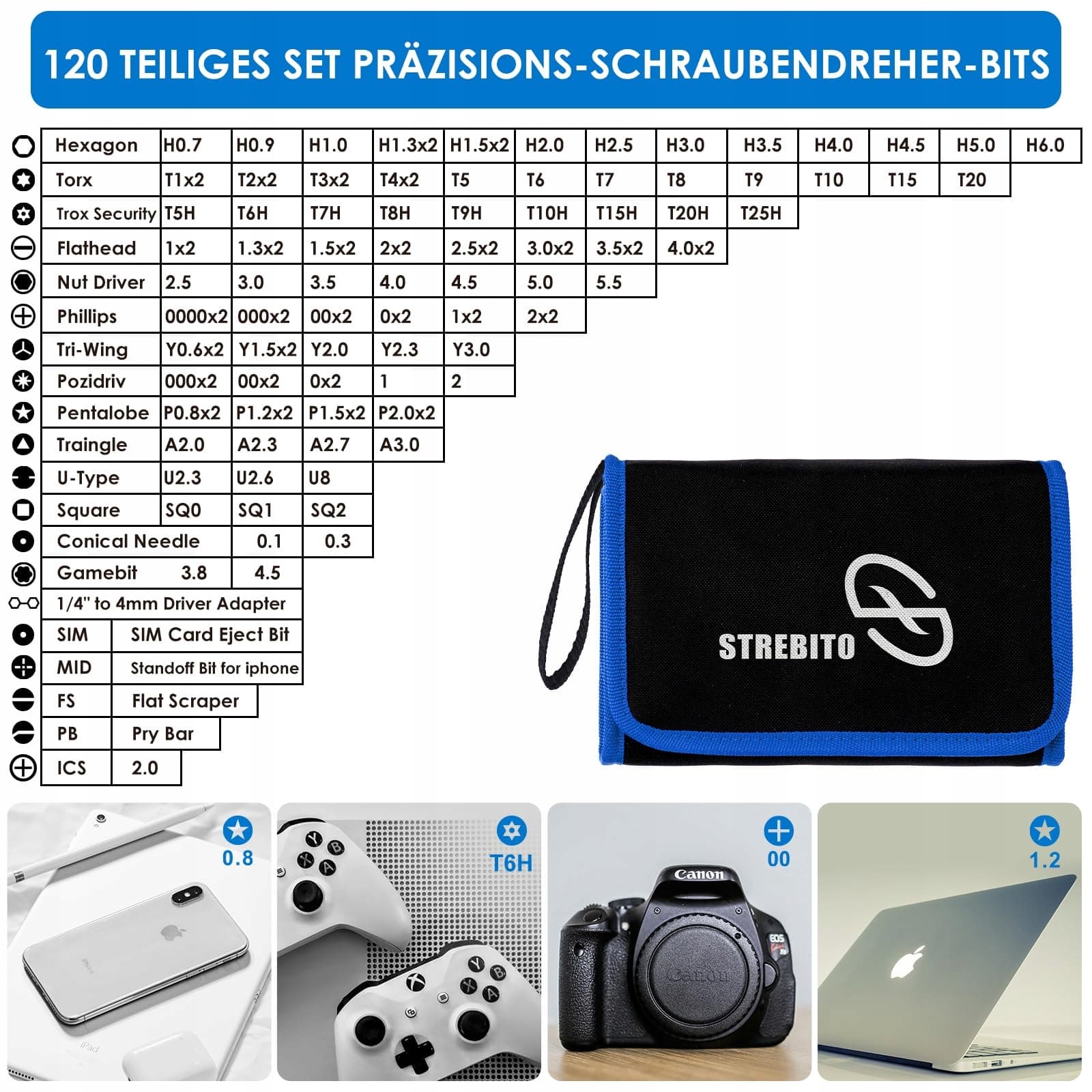 Zestawy precyzyjnych wkrętaków STREBITO 142-elementowe z 120 bitami Magnetyczny zestaw narzędzi naprawczych do iPhone'a, MacBooka, komputera, laptopa, PC, tabletu, PS4, konsoli do gier